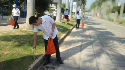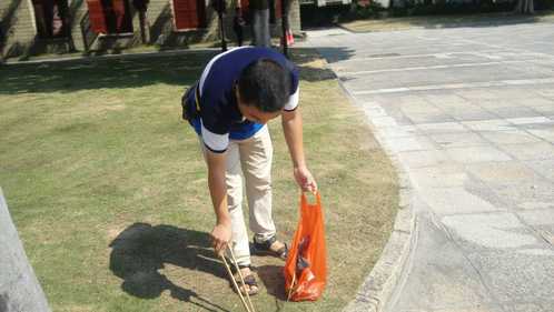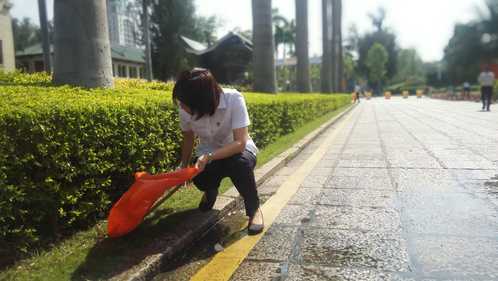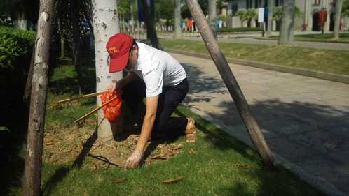 为喜迎第四届“互联网+”大学生创新创业大赛全国总决赛的到来,10月9日开始,公寓党支部组织党员、积极分子投身一线参与校园清洁,党员同志胸戴党员徽章亮出身份,以强烈的主人翁精神和大局意识,冲锋在前,仔细寻捡主干道烟头、草丛垃圾等,带动全员在盛会筹备冲刺阶段支援重点区域的保洁工作。