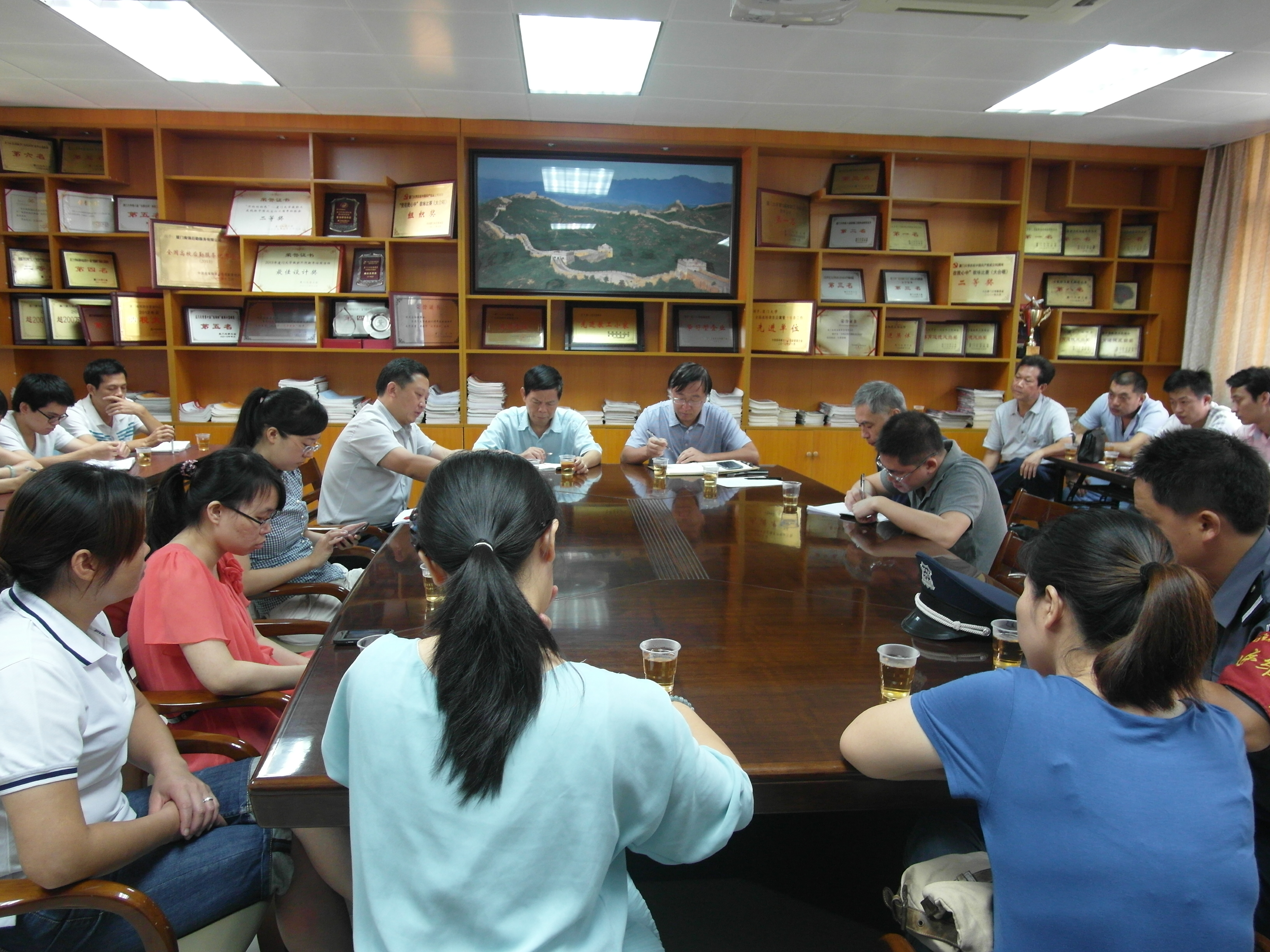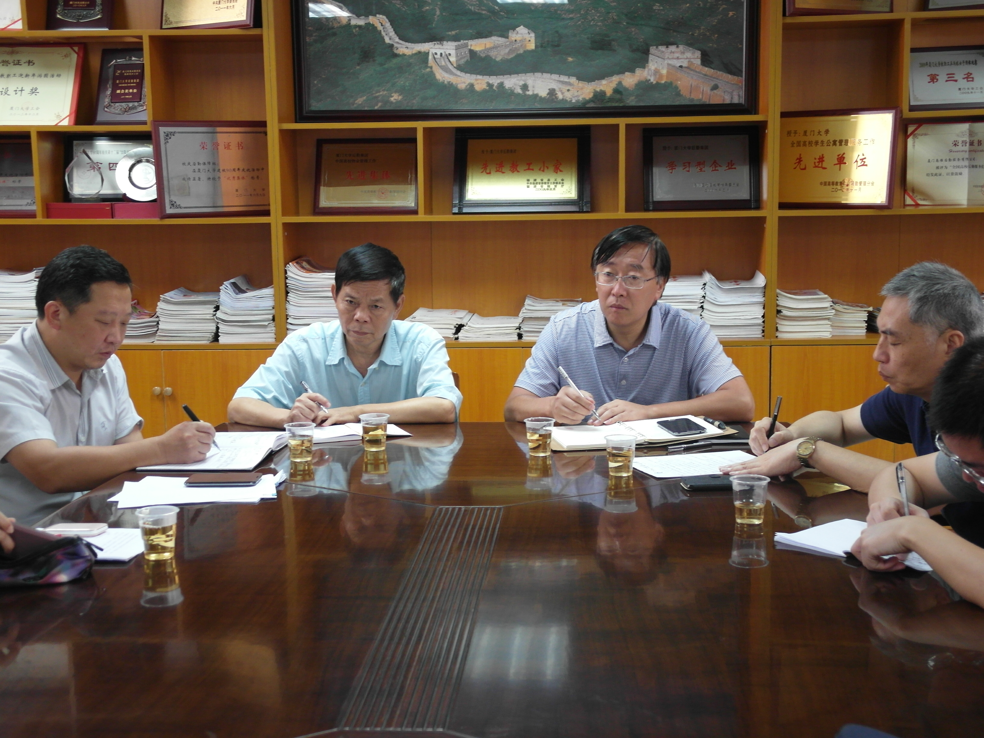 韩景义副校长深入后勤集团召开党的群众路线教育实践活动征求意见座谈会 7月31日上午9点,校党委常委、副校长韩景义深入后勤集团召开“群众路线教育实践活动”征求意见座谈会,第三督导组组长陈正国和组员刘建敏,后勤集团党委书记叶鹏飞、总经理林公明,以及集团中层管理骨干代表加了会议。韩副校长首先肯定了后勤集团近期工作的开展,他指出,党的群众路线教育实践活动旨在反“四风”,目的是为了让广大干部深入基层、深入一线,密切联系群众,切实为人民群众办实事、办好事。他表示,后勤集团工作基础的扎实有效离不开广大基层职工的无私奉献,他鼓励参会的员工结合自身实际工作,从各自角度出发,对学校和后勤集团领导班子及成员提出合理的意见和建议。会上,与会人员畅所欲言,向韩副校长和集团领导班子提出了许多有建设性的意见和建议。有员工站在集团发展的角度,反映了集团服务项目收费标准长期低于社会普遍水平的现状;有员工希望集团能与学校共享教育资源,丰富集团企业文化建设内涵;部分员工则根据多年的一线工作经验,对绿化保洁、餐饮服务等提出了合理化建议;青年员工期望学校能更加重视后勤集团员工归属感的问题,用政策鼓励青年员工为学校后勤服务保障做出更大的贡献;员工们都较为关注集团福利待遇政策,向韩副校长和集团领导班子反映了工资水平、住宿、子女入学、公积金、职业发展、心理健康等一系列民生问题。韩副校长认真听取并记录了与会人员的建议和意见,并与大家亲切交谈。对于当场能解决的问题,他立即进行了解答和回复。韩副校长表示,党的群众路线教育实践活动开展的非常及时、非常到位,领导干部能通过这项活动真正深入到一线和基层中去,感受到有血有肉的基层工作、生活。他说,今天的会开得很好,座谈会并不是走过场、走形式,他督促后勤集团领导班子及成员,会后认真整理、分析与会员提出的意见和建议,能解决的尽快解决,一时不能解决的要分阶段解决,切实为集团员工办实事、办好事。韩校长表示,高校后勤服务工作能否做扎实出成效,关键看基层,他号召集团管理骨干行动起来,更加积极、有力的工作,为学校师生员工提供更加优质的后勤服务保障。座谈会后,韩景义副校长根据座谈会上员工提出的部分问题,在集团总经理林公明及部门工会、安防部负责人的陪同下先后前往海韵8职工公寓、运输服务中心以及校内部分宿舍安防岗,了解关心一线基层员工的工作、生活环境。在海韵8,韩副校长充分肯定了集团前阶段对员工宿舍设施设备的更新及安全隐患的整改,他要求集团进一步提升职工生活环境,丰富职工业余文化生活,在员工中营造积极、健康、向上的氛围;在运输服务中心,韩副校长对办公场所拥挤简陋表示关切,对运输中心在保障师生教学科研及各类重大活动中保质保量、安全行车表示充分的肯定,要求中心加快车载GPS安装,加强车辆安全维护及安全行车规范建设,切实杜绝各类安全事故发生;在宿舍安防岗,韩副校长对安防队员在炎热艰苦的工作条件下尽责履职,维护学生公寓安全进行了表扬和慰问,他了解到集团近期将加大力度改善安防人员工作条件后,督促集团加快改善安防岗的硬件设施建设,切实改善安防人员的工作环境。 文 麻燕凌图 曾小辉