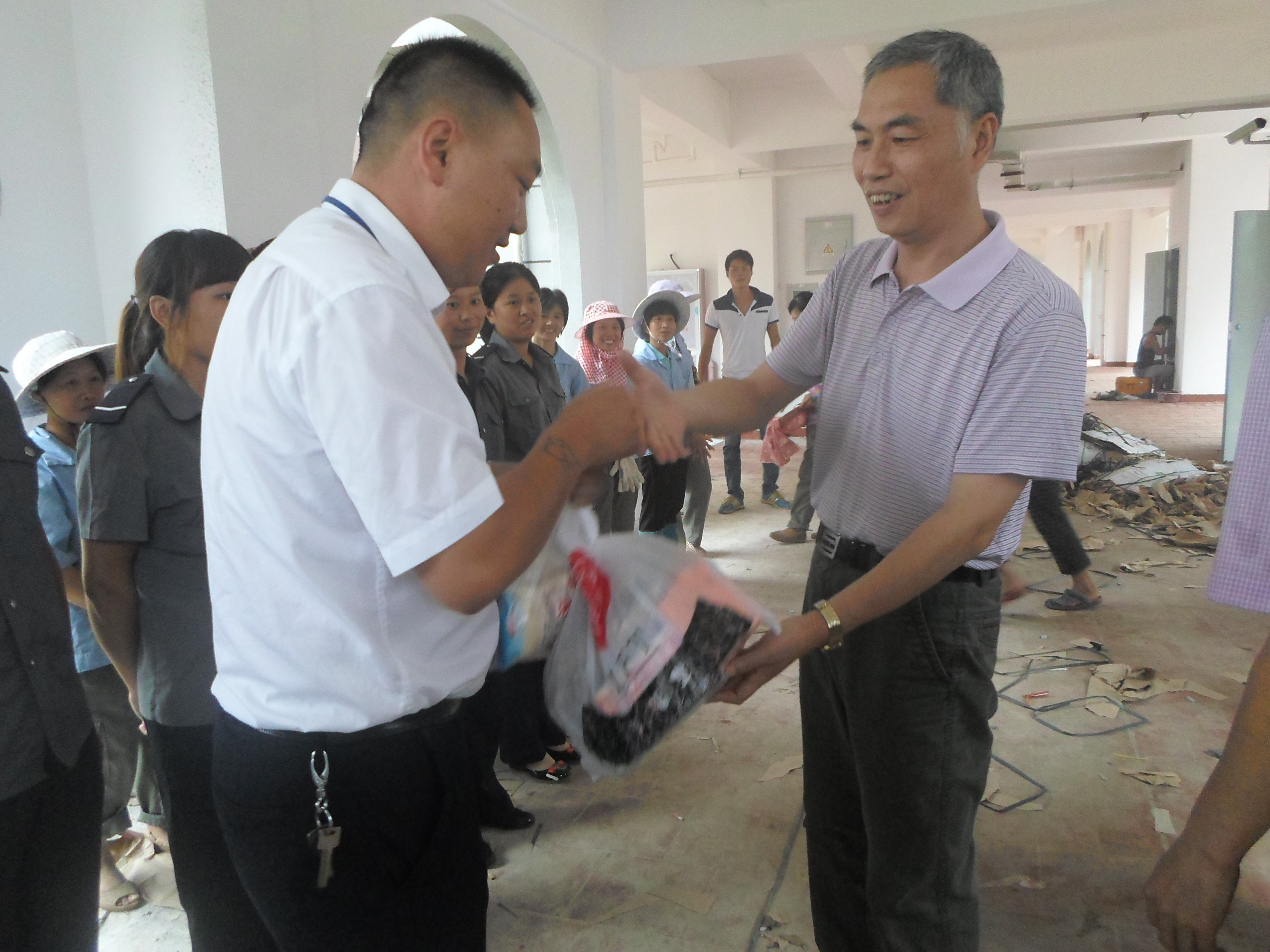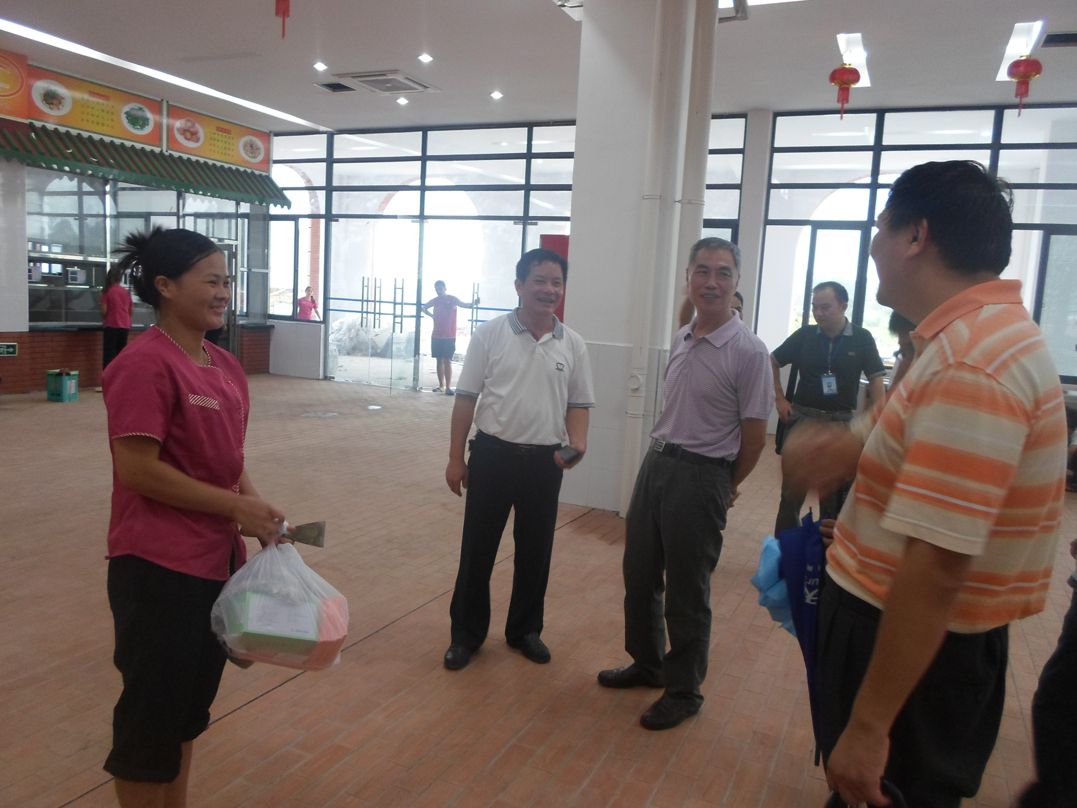 ——集团领导慰问翔安校区后勤基层员工 8月15日,集团党委书记叶鹏飞、副总经理刘君彬在翔安校区服务办党支部书记王裕民及相关部门负责人的陪同下,慰问了翔安校区坚守工作岗位的后勤一线员工,为他们送去了夏日关怀。在笃行2楼栋前的绿化施工现场,员工们正忙绿地工作着,当叶鹏飞一行将菊花茶、冬瓜茶等防暑降温用品送到他们手中时,他们顾不及擦掉脸颊上的汗珠,双手接过解暑饮品连声感谢。叶鹏飞详细询问他们的工作和生活情况,叮嘱员工们要注意劳逸结合,提高夏季高温作业的自我保护意识,做好后续的防暑降温工作。随后,叶鹏飞一行前往丰庭餐厅慰问食堂员工,在深入检查了大厅、操作间、洗碗间、烹饪件、配餐间后叶鹏飞强调,要时刻紧绷安全之弦,加强质量监督及规范管理,不断改进工作方法,使学校食堂安全卫生工作更加规范、有序,以便更好地为师生服务。当天,集团领导一行还慰问了学生公寓安防岗亭的安防队员们。叶鹏飞热情地与员工一一握手,亲切地说:“感谢你们为学校和集团付出辛勤的汗水,你们辛苦了,我代表集团对大家的奉献精神表示诚挚谢意。”安防队员激动表示,将以更大的热情做好后勤服务保障工作。一声声关切的问候,一句句深情的叮嘱,让连日来奋战在高温下的一线员工倍感温暖、备受鼓舞。“只有我们把群众放在心上,群众才会把我们放在心上;只有我们把群众当亲人,群众才会把我们当亲人”,此次“送清凉、送健康、送安全”高温慰问活动是后勤集团领导关心关爱员工的真实写照,也是集团将党的群众路线内化到实际工作中的生动体现。 翔安校区服务办党支部