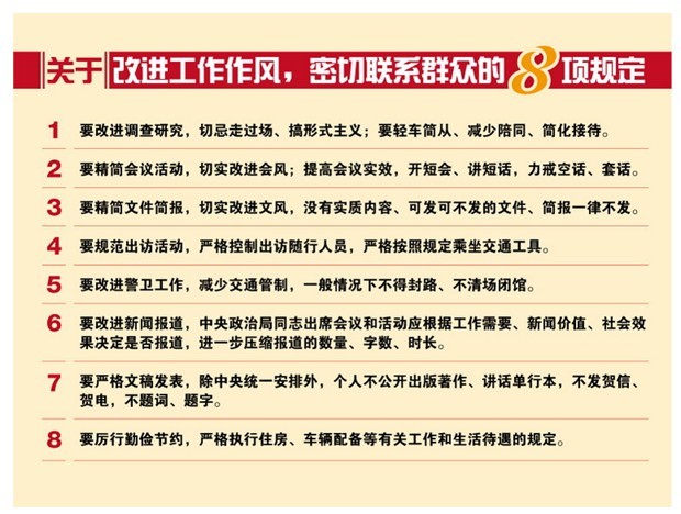 中央八项规定,从这一天起,成为了13亿中国人生活中一个占据了重要位置的特殊词汇,成为了中国共产党重塑党风政风乃至整个社会风气的利器。