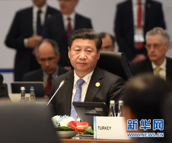 2015年,国家主席习近平参加在土耳其安塔利亚举行的二十国集团领导人峰会,在11月15日的第一阶段会议上发表了题为《创新增长路径 共享发展成果》的重要讲话。
