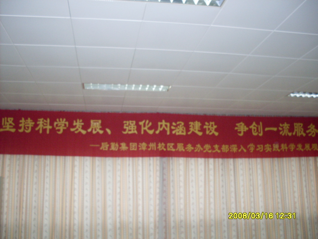3月23日下午3点,后勤集团漳州校区服务办党支部组织全体党员和入党积极分子第一次集中学习科学发展观的相关知识和资料,本支部的集团领导联系人、党总支书记、学习实践活动领导小组组长叶鹏飞参加了会议。