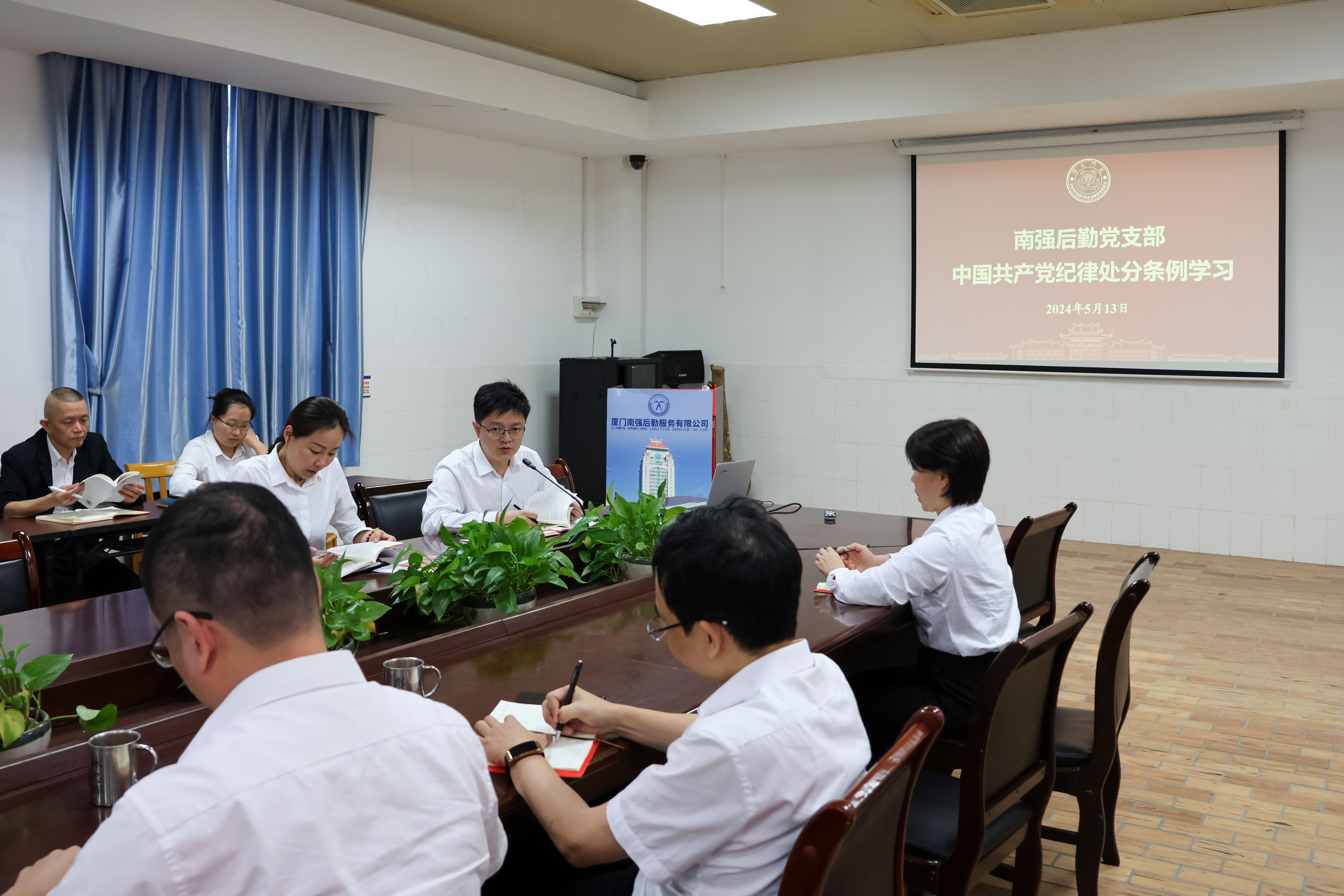 5月13日傍晚,南强后勤党支部召开党员大会,学习交流《中国共产党纪律处分条例》。会上,支部书记林琳逐字逐句领学了《条例》部分内容,要求广大党员务必重视新修订的《条例》内容的学习,克服“只要不做违法的事,《条例》学习就与我无关”的错误认识,把《条例》学习融入日常,真正做到学纪、知纪、明纪、守纪。