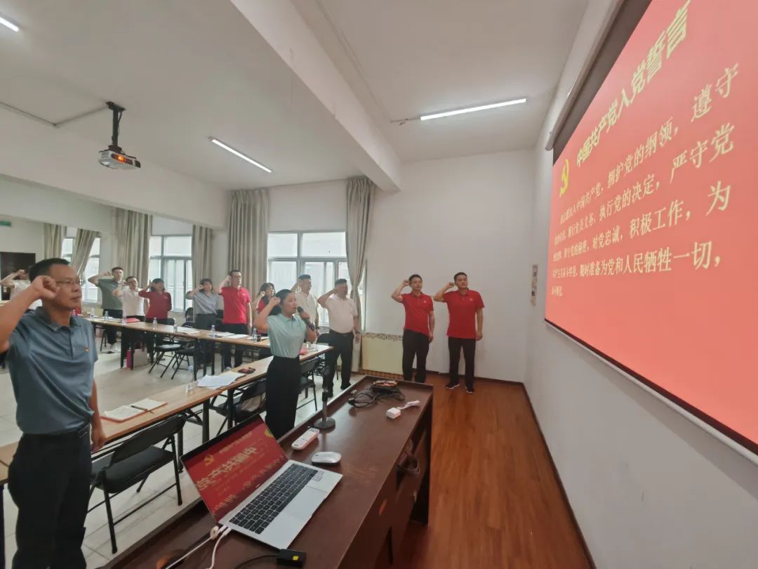 随后,在支部书记郑赛莉的带领下,全体党员共同重温了入党誓词,每一句誓言都再次唤起了他们内心的激情与使命感。他们高举右手,面对着鲜红的党旗,庄严宣誓,声音坚定而有力。这一刻,每一个党员都深刻感受到了身为共产党员的荣耀与责任,更加坚定了为党和人民事业奋斗终身的决心。