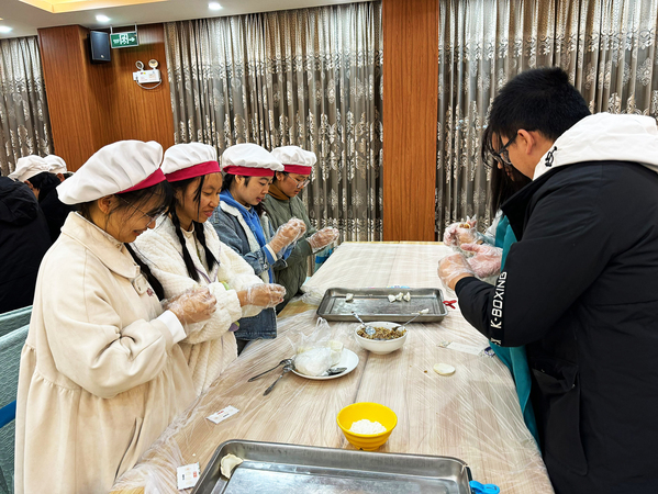人间烟火气,最抚凡人心。在行政总厨林庆展的指导下,同学们热情高涨。大家分工合作,配合默契,忙得不亦乐乎。不一会儿,一个个形状各异、生动可爱的汤圆、饺子挤满托盘。当香气四溢的汤圆饺子出锅,大家的脸上都洋溢着兴奋与自豪的神情。同学们一边品尝自己的劳动成果,一边畅谈学习生活,整个餐厅欢声笑语,其乐融融,轻松温暖欢乐的气氛驱散了冬日的严寒。