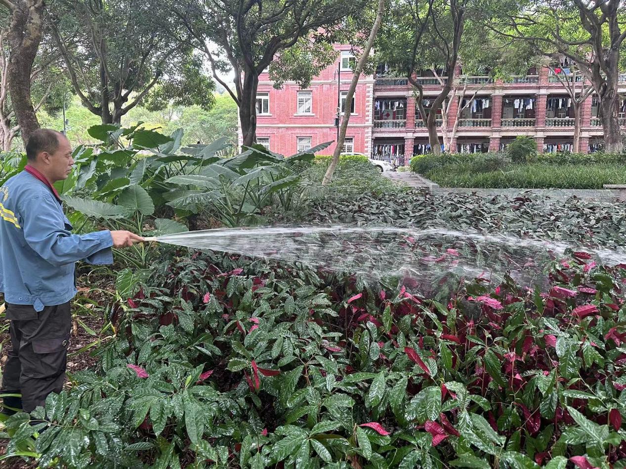 本次秋季绿化提升工程主要集中在凌云路水库周边、大礼堂半坡、芙蓉湖、亦玄馆及大南门等区域。为保障苗木在秋冬两季能保持最佳状态,绿化保洁部在充分考虑了绿植的外观、是否耐寒、花期及最终展现效果后选择了马尼拉草、黄心梅、扶桑等苗木。