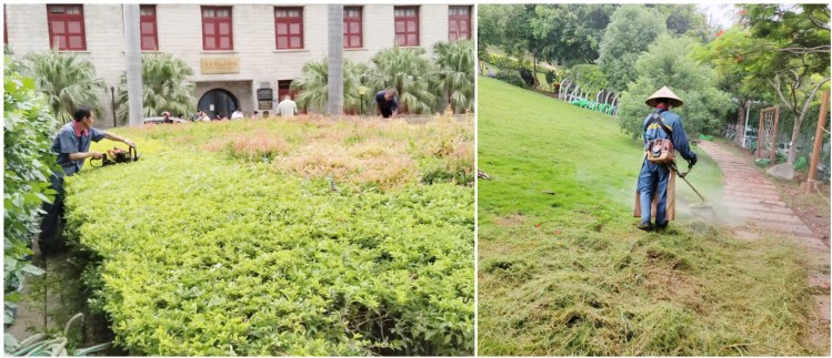 夏季是苗木生长旺盛的季节,也是绿化养护任务最繁重的季节。养护工人头顶烈日修剪枝叶、打理草坪,细心呵护烈日下的校园绿色。学校恢复开放预约后,校内人流量增大,绿化保洁人员加强了卫生保洁力度,对西校门、访客中心路口、三家村等重点区域增加了巡查和打扫的频次,确保校园环境干净整洁。