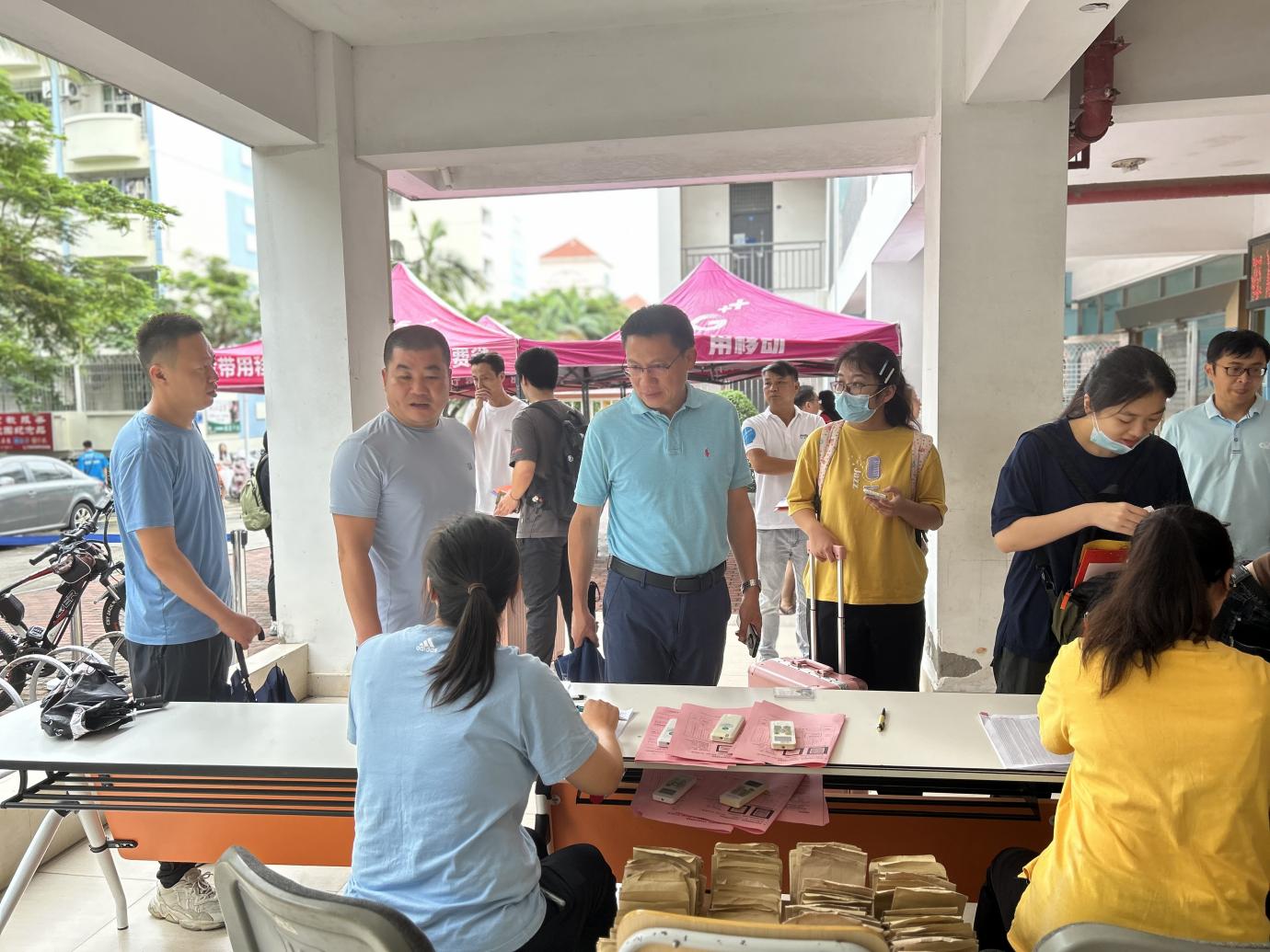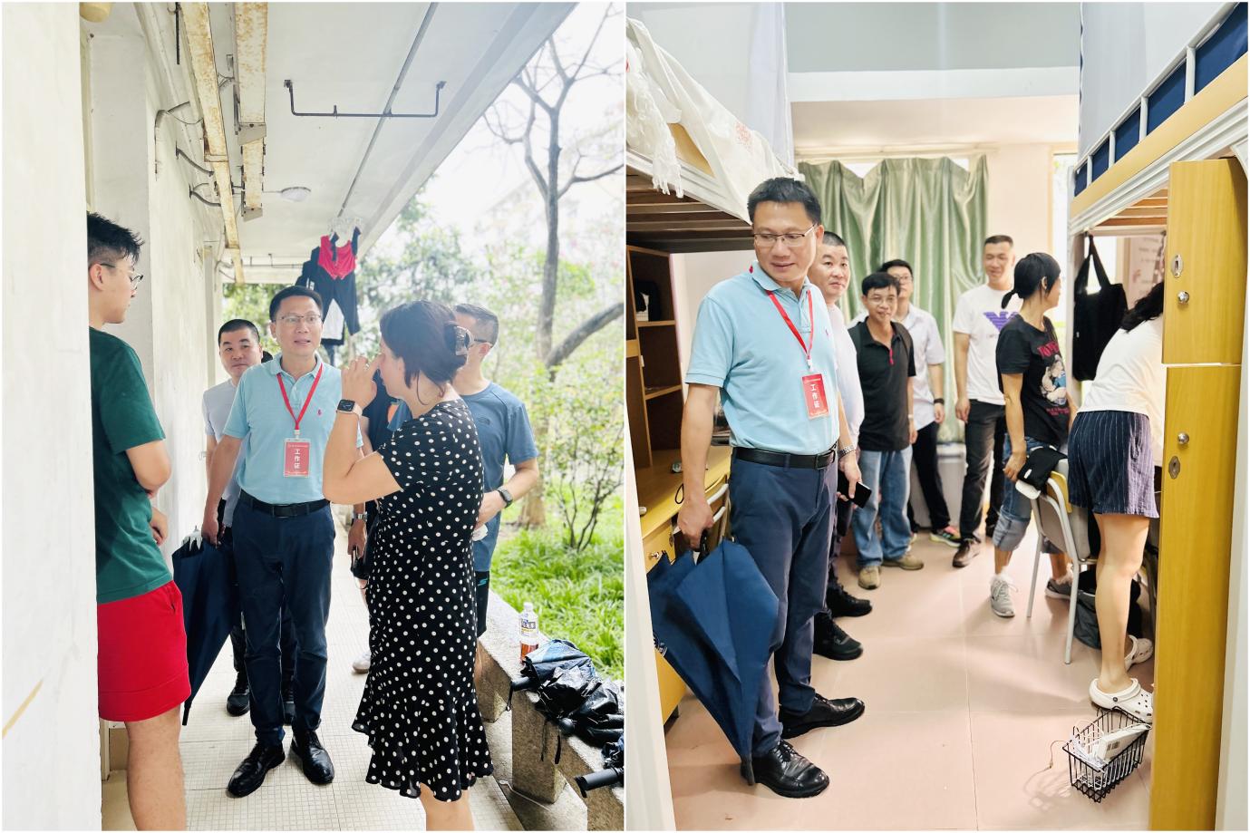 迎新期间,集团副总经理李启忠和中心主任谢伟锋、副主任叶晓真等到校门、入住办理点检查指导迎新工作,同时走访学生宿舍,与新生交流,了解他们的住宿生活需求,送上暖心关怀。