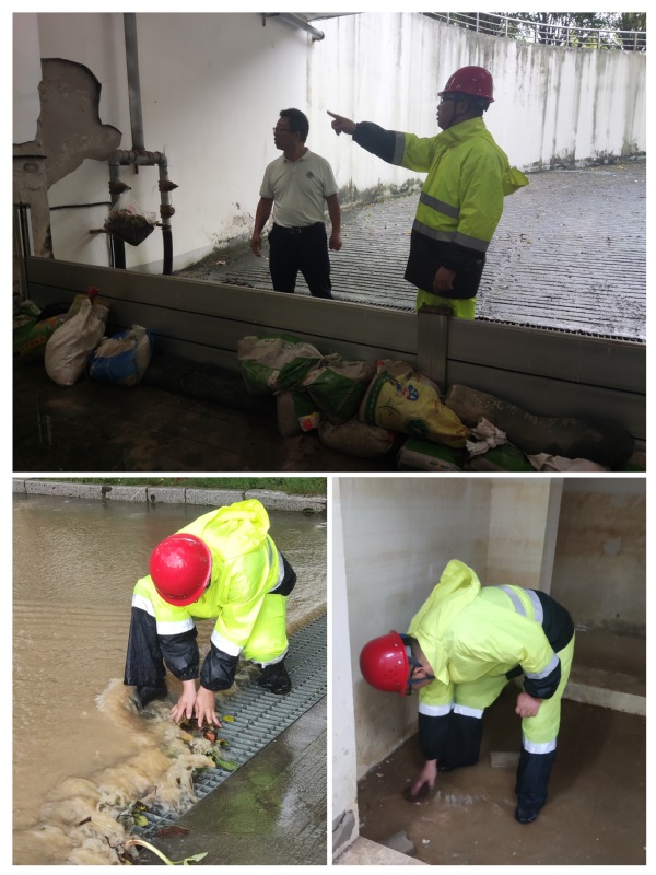 漳州校区低洼区域设置挡水板,积水区域及时清淤排水