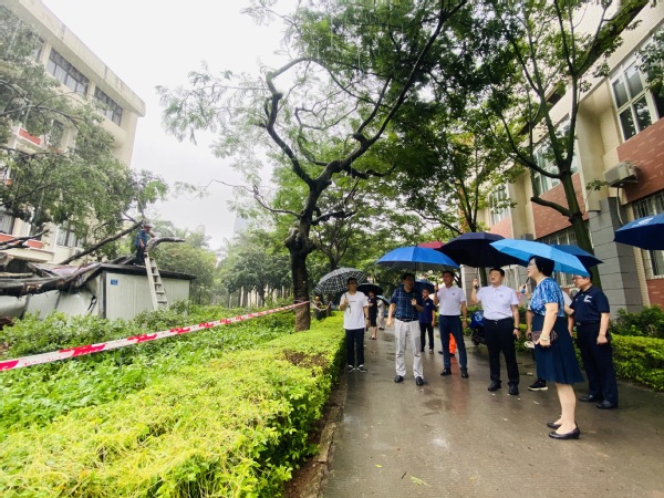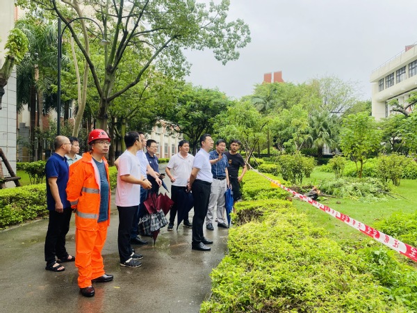 6日上午,集团总经理杨旸、副总经理王裕民陪同校党委副书记全海在受灾现场了解情况,商讨防汛设施设置等问题