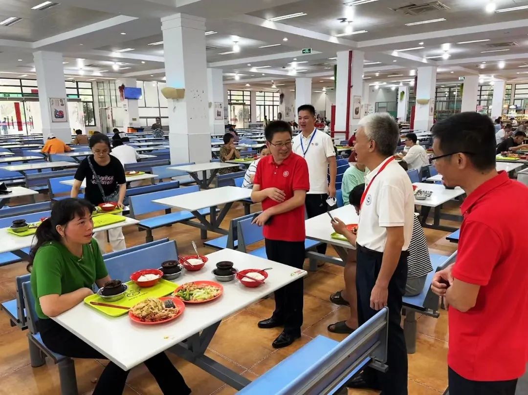为了做好迎新工作,饮食服务中心在学校、集团的指导下精心策划,早早就做好了准备。迎新当天,学校和集团领导到现场关心指导迎新工作,到餐厅与家长和新生面对面亲切交流,传递对2023级新生们的热切关怀。
