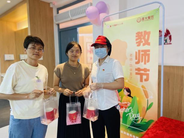 桃李芬芳育英才,春华秋实感师恩,公司的传统节日系列回馈活动已经成为校园餐饮文化的一个重要组成部分,各餐厅纷纷以此次教师节回馈活动为契机,增强与师生互动交流,开展感恩教育、弘扬尊师重教的中华文化和中华饮食文化,“厦大餐饮”也将继续以“用心做菜,用爱服务”为服务宗旨,为校园师生提供热情周到的服务,全力保障餐饮服务品质,不断提升师生的安全感、获得感和幸福感。