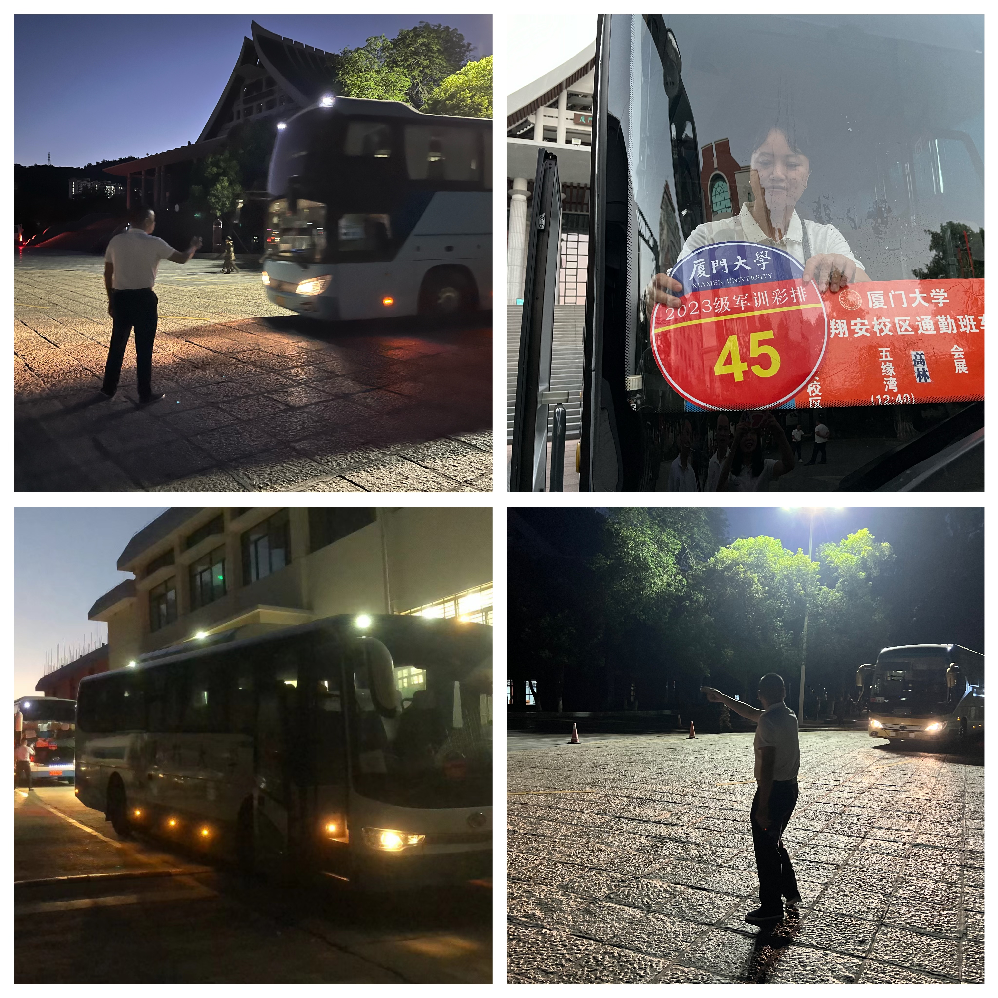 凌晨5点,中心全员在科艺中心广场集合,按照既定任务分工分别做好车辆引导、停放、现场贴标、登记等工作。凌晨5:30,晨风微拂,迎着清晨的第一缕曙光,车辆准时到位,67部大客车整齐有序停放在科艺广场及群贤路,在中心工作人员的现场引导下,学生对标有序上车。6:10车辆准时发车,护送新生前往翔安校区。军训汇演结束前,中心全员提前到达,安全有序接送学生返回思明校区。集团领导多次到现场关心慰问一线员工,了解发车情况并进行现场工作指导。