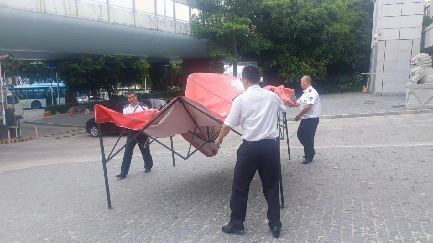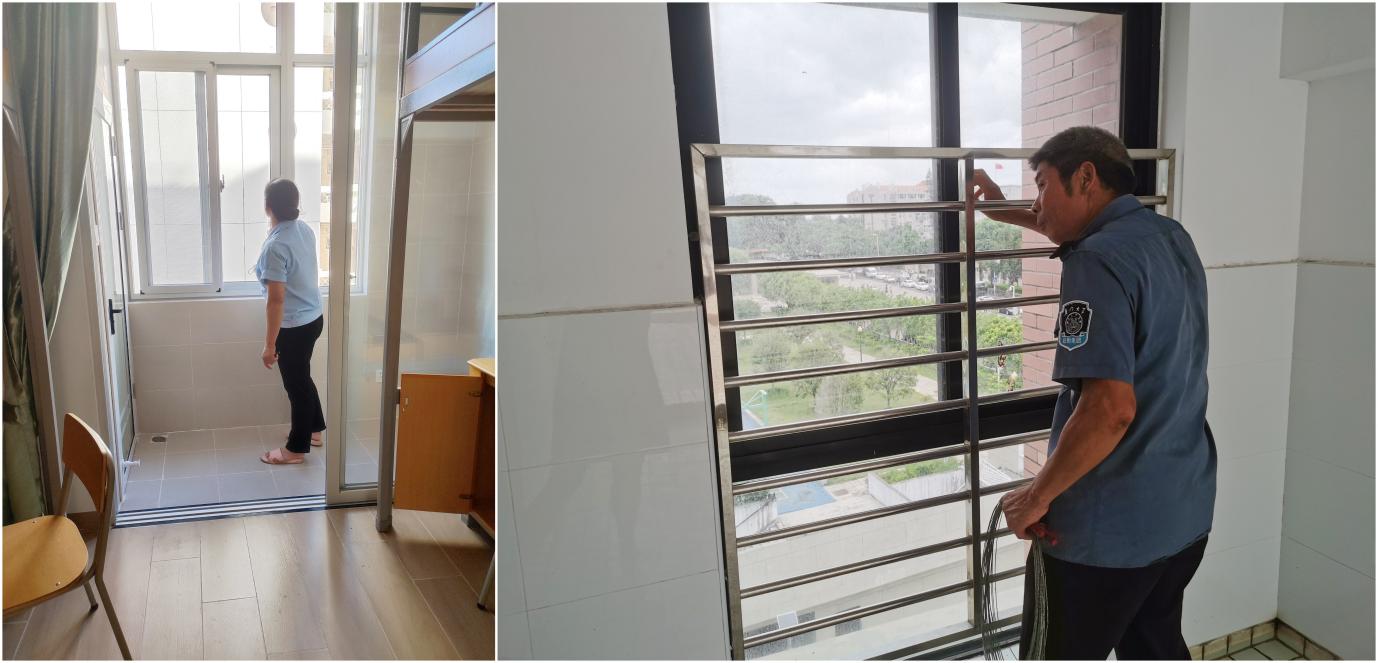 随着今年第5号台风“杜苏芮”逐渐逼近,7月24日以来,学校连续提升防台风应急响应等级。7月27日上午,学校将防台风应急响应提升至Ⅰ级。对此,学生公寓与环境服务中心高度重视,按照学校和集团的部署做好各项防御准备工作,积极主动打好防台防汛准备仗。