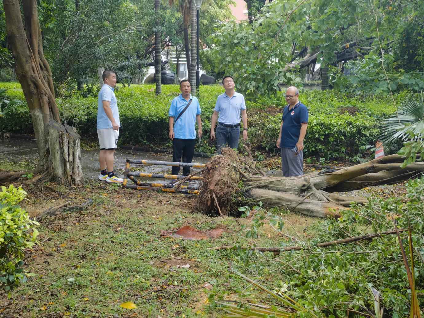 与此同时,中心各部门也迅速行动,对台风过后产生的落叶杂物、淤积泥沙、生活垃圾等进行清理打扫,使服务场所和责任区域在28日当天下午就恢复整洁。