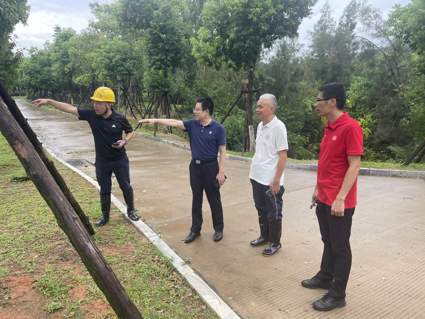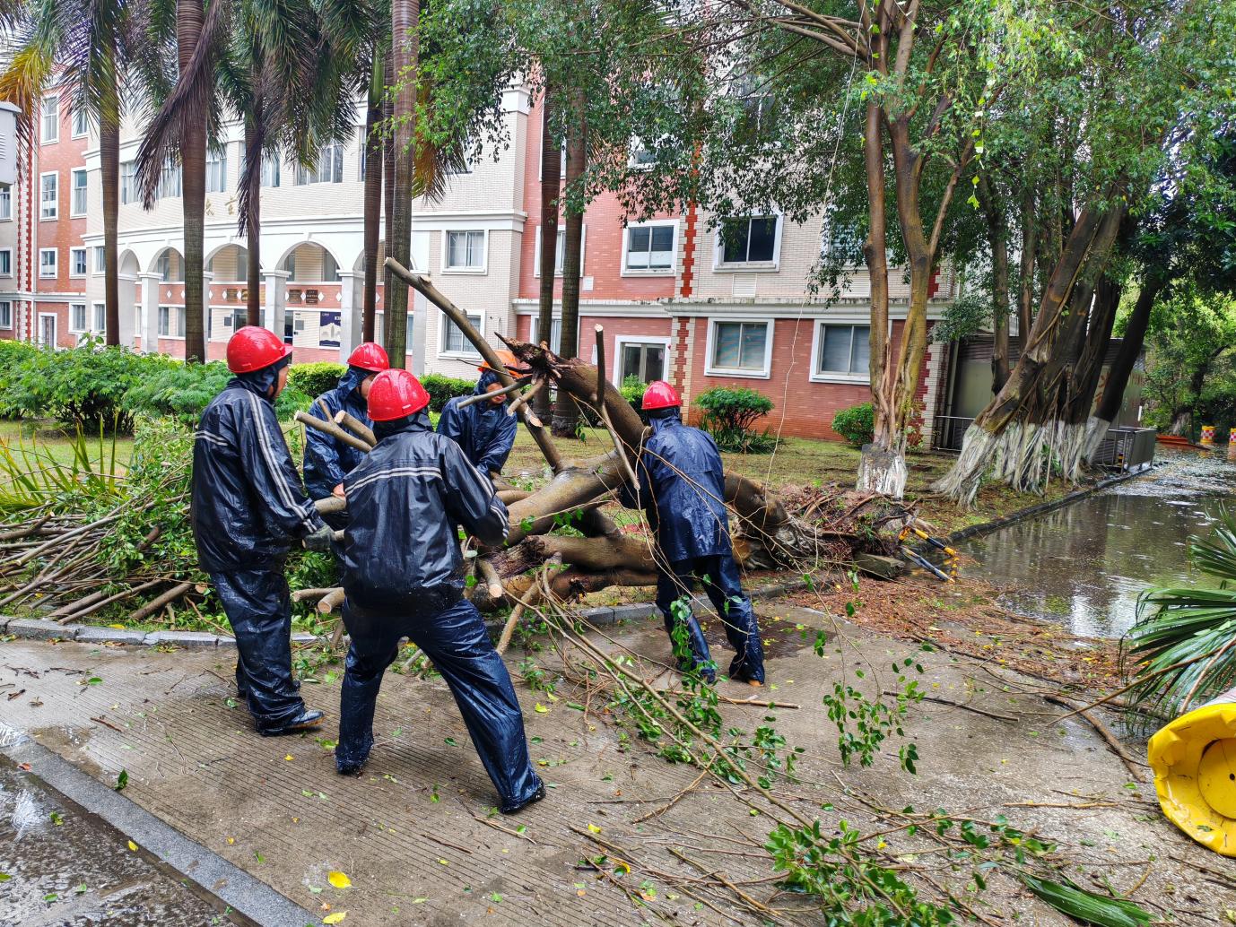 台风来临前,中心29名家住校外的应急抢险队员入住思明校区,与校内人员一道24小时值守,随时做好清理倒伏树木、清掏淤积雨水口、疏通排水管道等应急抢险工作,严防死守,确保校园安全。