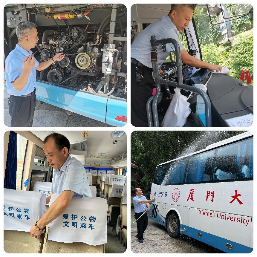 七八月正值暑假,也是一年中最炎热的月份,为保障每日行车安全,为广大教职员工提供舒适的乘车环境,驾驶员们坚持做好每日“三检”自查,每次出发前提前到岗做好车况安全、车内卫生检查,提前给车辆晒水降温并开启空调制冷系统;收车后及时做好车辆外观清洗和内部清洁工作。