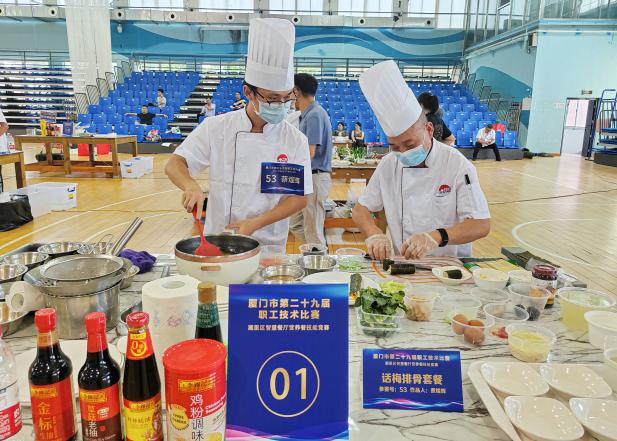 2023年8月5日,由厦门市湖里区总工会主办、厦门市团餐供应链协会承办的厦门市第二十九届职工技术比赛“湖里区智慧餐厅营养餐”总决赛在厦门市蔡塘学校举办。厦门南强后勤服务有限公司参赛队伍在公司副总经理林忠辉的带队和公司技术总监林勇的指导下,经过半个月的技术培训,通过理论考试、现场比武等环节激烈角逐, 3名选手喜获佳绩,蔡煌辉荣获金奖,罗兵荣获银奖,马雷军荣获铜奖,南强后勤公司也获得了活动最佳组织奖。