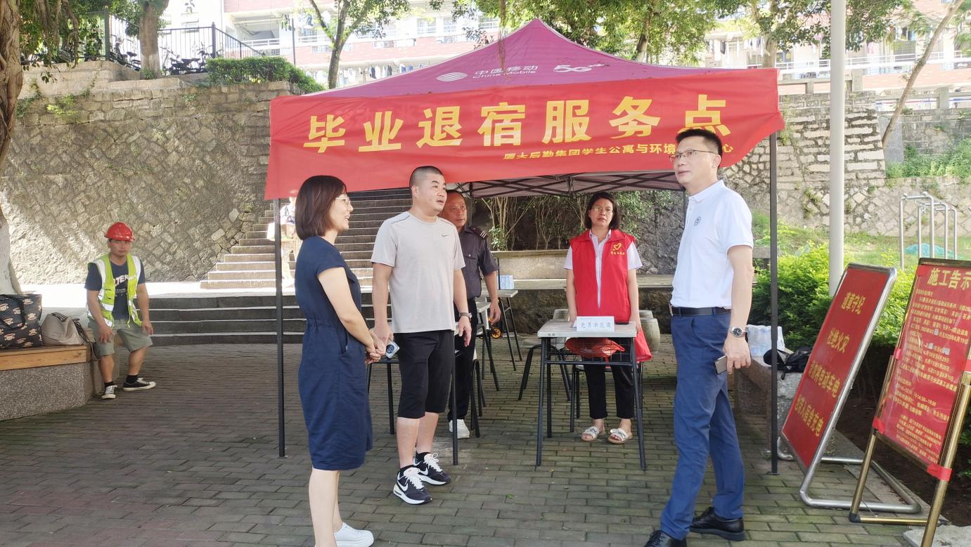 在办理离校退宿手续期间,工作人员靠前服务,简化办理程序,及时处理各种情况,为毕业生提供高效快捷的“一站式”服务。毕业季期间做好宿舍园区安防值班值守,严格登记大件物品出园区,同时加强宿舍园区的巡查检查,做好防火防盗等安全防范工作。