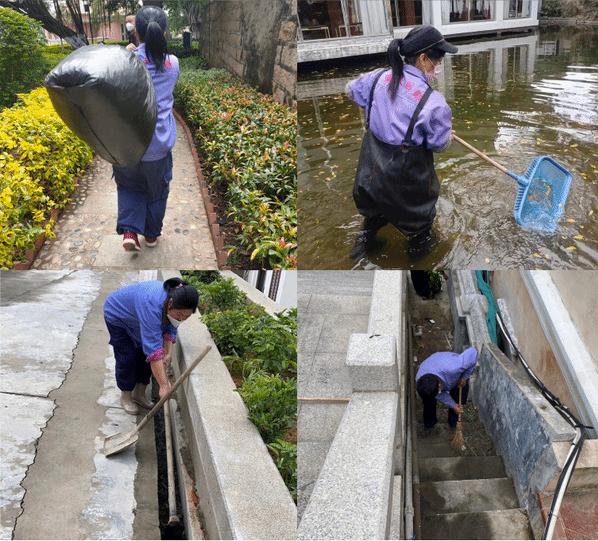 3月下旬,公司各项目振奋精神,全面提速加力,加大日常巡查、保洁绿化力度,做好重点区域的清扫冲洗工作,对垃圾死角进行彻底清理,对重点绿化带进行整形修剪和补种提升,全力达到“物见本色”“绿见本色”标准,确保物业服务区域干净、整洁。
