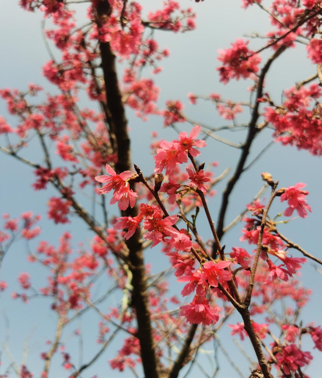 八闽园的福建山樱花、玉兰花、山茶花争相斗艳,芙蓉湖边,三角梅、紫花风铃木、黄花槐一起唱起了生机盎然的春曲,宿舍园区外的炮仗花花团锦簇,丰庭餐厅门前的羊蹄甲粉白相间,随风摇曳,更不说西部片区傲然挺立枝头的黄花风铃木和那成片成片的碧桃林......过往的师生不自觉地驻足欣赏,摄影爱好者们纷纷举起相机,将这目之所及的美好偷偷私藏。