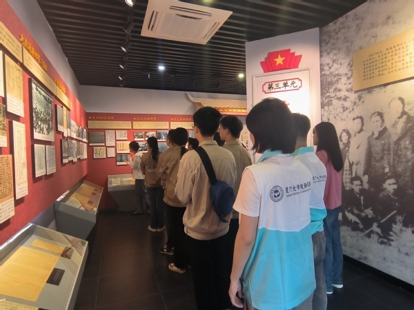 青年们首站到访的是厦门大学革命史展馆,这是学校红色文化基因培育与传承的重要阵地,是厦门大学校园独具魅力的一抹亮色,也是独具魅力的红色“聚宝盆”。场馆讲解志愿者带大家依次参观了革命史馆六个展厅的内容,深入了解了从1921年至1950年厦门大学师生反抗外来侵略、拯救民族危机、加强党团建设的奋斗历史。通过学习,大家进一步了解了先辈们的革命精神,振奋了青年们的奋斗热情。