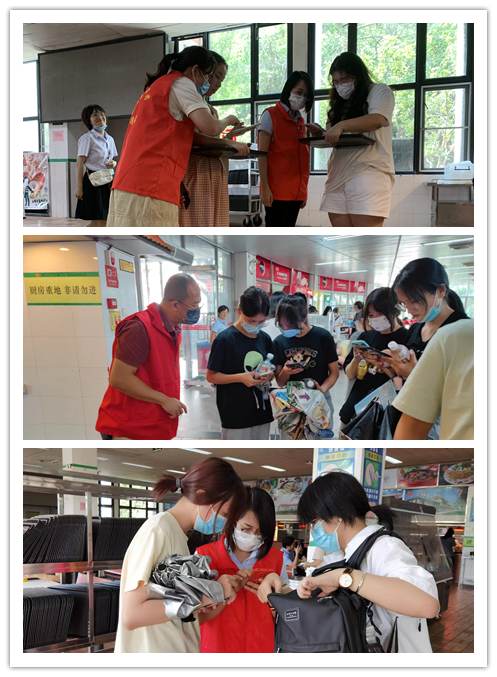 支部党员也纷纷穿上红马甲,到餐厅开展志愿活动,协助维持供餐秩序,为新生答疑解惑,让党旗高高飘扬在后勤服务保障的阵地上!