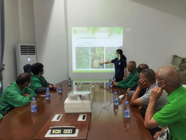 在厦门大学附属翔安医院项目举行的绿化岗位技能提升专项培训课上,十多位绿化员工仔细聆听具有扎实绿化经验的游淑风、蓝永跃两位讲师从物业绿化管理的主要内容、绿化日常管理的技术措施、绿化灾害预防应急处理、物业绿化常见设备及操作四个方面,以课堂理论及现场实践指导结合的方式进行授课。