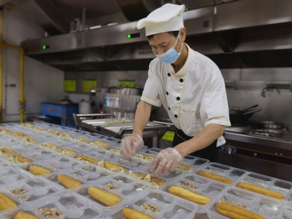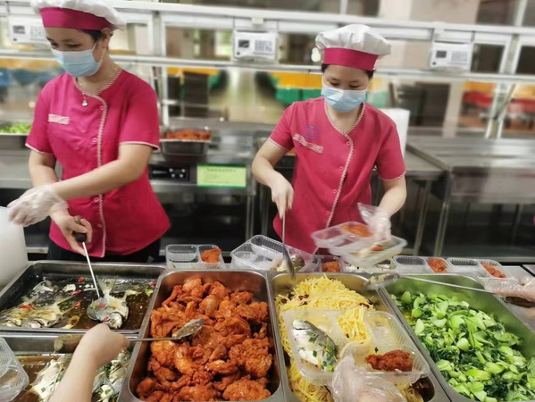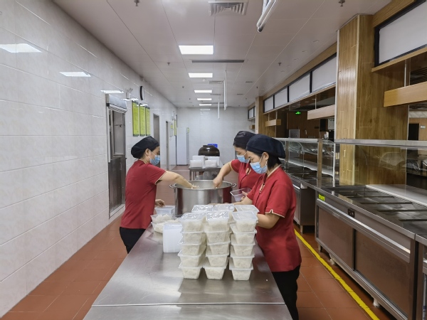 6月5日,漳州开发区突发新冠肺炎疫情,开发区管委会紧急抽调大批人员投入疫情防控一线,防疫人员的供餐保障成为一个急需解决的问题。彼时,受区域管控影响,漳州校区校内3个餐厅人手严重不足,为确保校内近20000名师生员工每日用餐,餐饮部已从附中餐厅抽调16名员工(餐厅仅剩28名员工)、从芯云谷餐厅抽调了一名服务员(餐厅仅剩5名员工)到校内餐厅支援,而厦大附中餐厅也正面临高考、中考的重要供餐保障任务。尽管已肩负着沉重的供餐压力,在了解到漳州开发区疫情防控指挥部和各核酸检测点、卡口的防疫人员亟需供餐保障的时候,餐饮部仍然主动同漳州开发区管委会对接,由厦大附中餐厅、芯云谷餐厅以供应套餐的形式承担了这项保障任务。