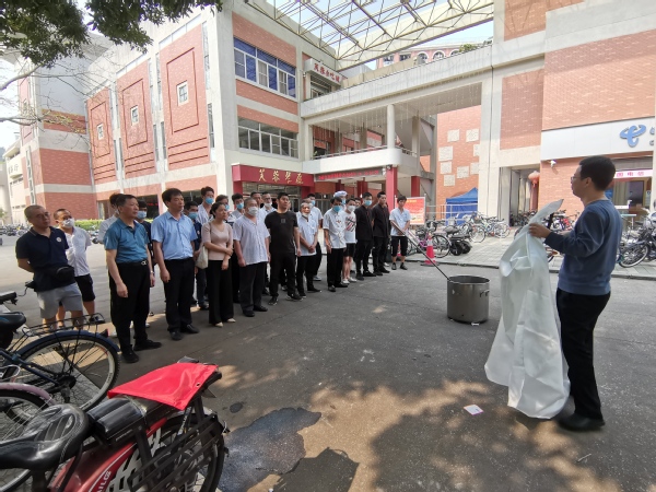 为加强饮食服务中心安全生产能力,提升中心员工消防安全意识,日前,饮食服务中心邀请校保卫处防火与交通安全管理科副科长孙俊逸、治安科副科长王龙 为中心员工开展一场贴近实战、注重实效的消防安全实操培训,着力提升饮食服务中心员工的安全素养。集团副总经理陈有亮、中心主任江森民、中心副主任、各部门代表参加。