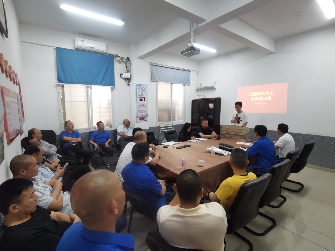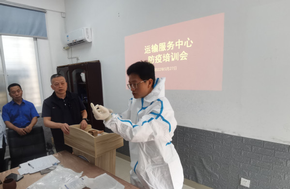 为加强运输服务中心疫情防控能力,提升中心员工疫情防控安全意识,5月27日,中心邀请厦门易泓旅游运输有限公司副总经理苏宁伟来翔安运输服务部为中心全体同事培训运输防疫相关知识,演示防护服穿脱的注意事项。