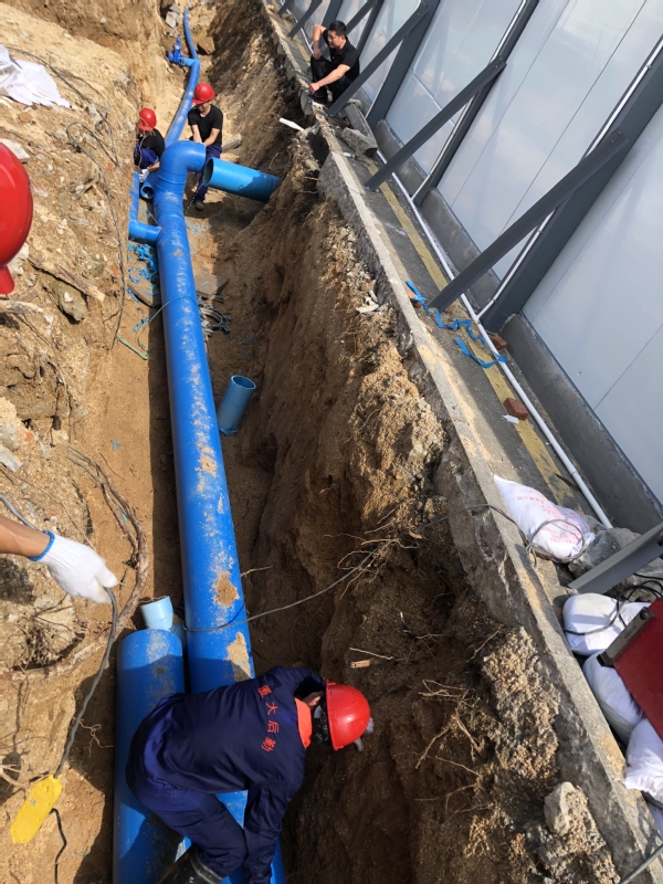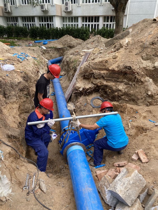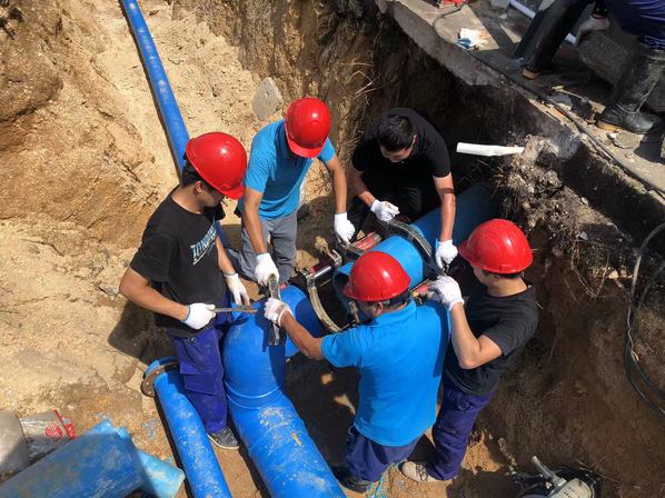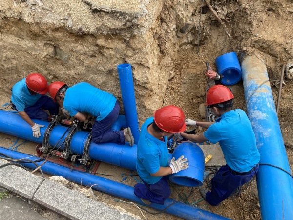 齐心协力,将新管线预设到位,准备停水后管线改道热熔对接