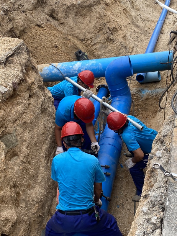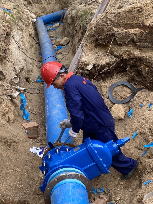 立足前期充分的准备,上午8时,水管迁移工作正式启动。切断旧管线放水的同时,安排1组人员跟踪监控排水现场安全情况,同时安排2组人员做好新管道就位、水管连接准备等工作,确保迁移工作高效有序开展,各个流程有条不紊、规范严密,各个步骤环环相扣、相辅相成。