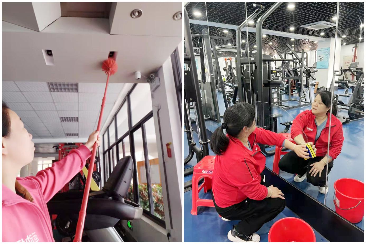 组织卫生扫除。为迎接新学期的到来,中心组织员工对学生宿舍、公教、场馆、校园环境等进行卫生大扫除和防疫消杀,为师生营造整洁卫生、安全舒适的学习和生活环境,“净”待学生返校。