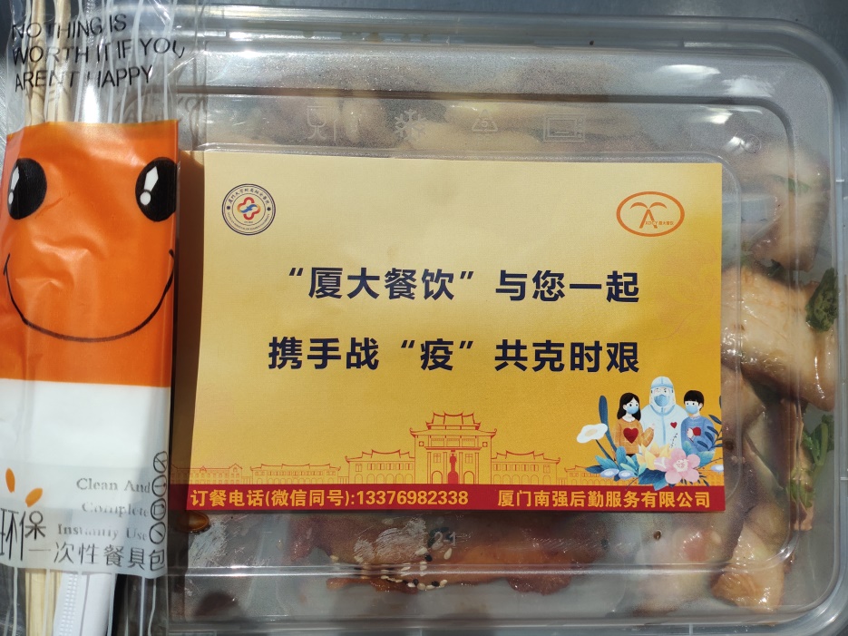“厦大餐饮”精心设计共抗疫情的餐盒贴纸
