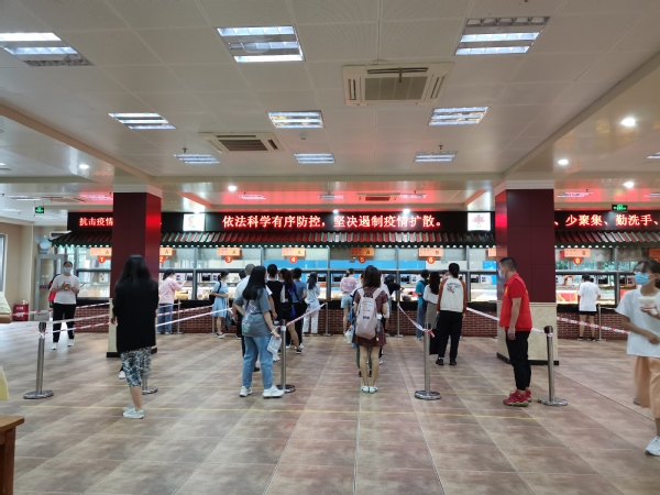 取消堂食当天,各餐厅整洁有序,迎接师生的到来。学校和集团各级领导非常重视,到各餐厅关心指导防疫和供餐工作。