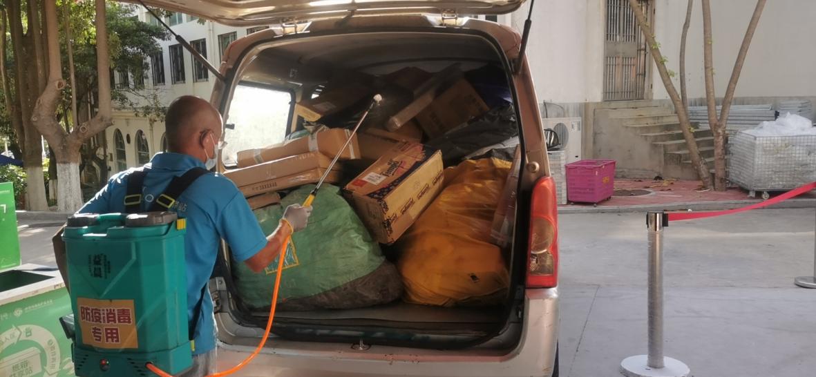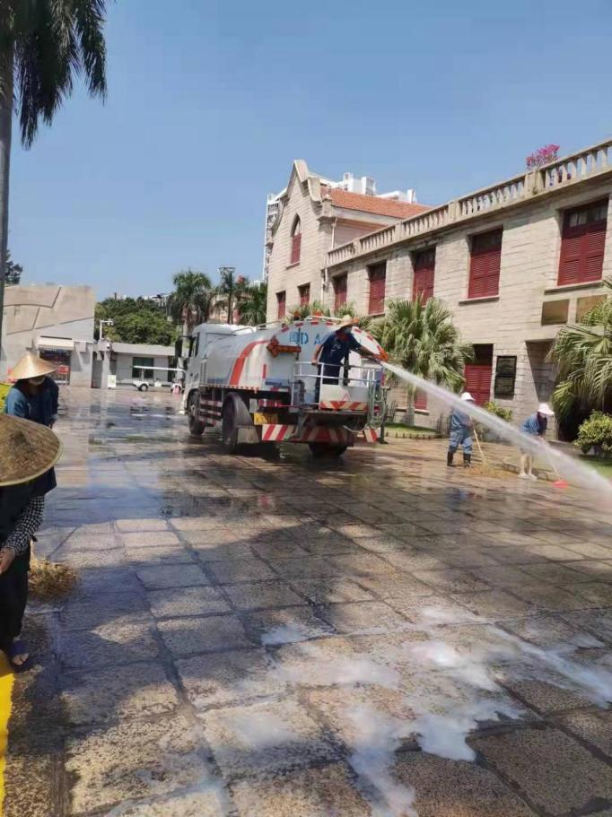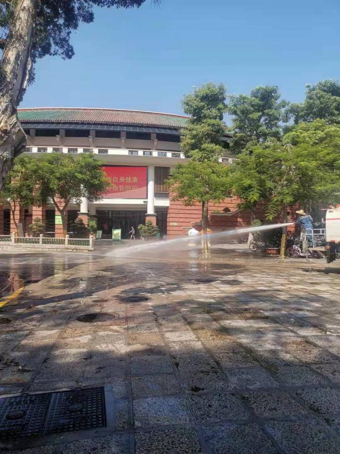 校园公共区域:冲洗校园核心区域主干道路面10万平方米,用水车50车次。每日对餐厅周边约1万平方米区域进行一次全面防疫消毒,对6座公厕、110个不锈钢垃圾桶等每日2次防疫消毒。每天中午和晚上增加2名员工负责回收芙蓉园、上弦场周边的厨余垃圾,校园垃圾日产日清,每日清运约5吨。