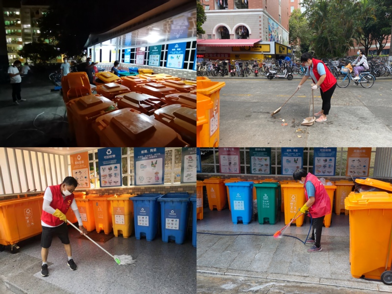 公寓党支部党员、中心办公室成员发挥示范表率作用,下沉垃圾分类点,担当起督导责任,协同垃圾分类督导员耐心指导学生进行垃圾分类,同时对垃圾分类亭周边进行巡查,发现垃圾及时清理,保持周边环境干净整洁;对部分较大的垃圾分类点位如芙蓉6和芙蓉8实行连续12小时督导,确保垃圾分类成效。集团党支部党员志愿者也前来支援,协助垃圾分类督导。