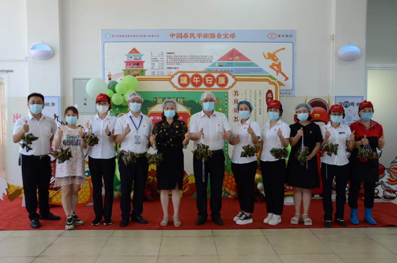 公司与进修二附小厦大餐厅精心筹划端午节文化氛围,于6月11日开展“劳动教育课堂”,为学校六年级师生举办“传承中华文化,弘扬劳动精神”的端午包粽子活动,公司领导与学校领导、师生共聚一堂,捋粽叶、填糯米、封口、扎捆,气氛和谐融洽,获得师生的一致好评。