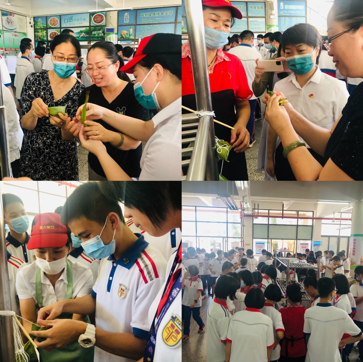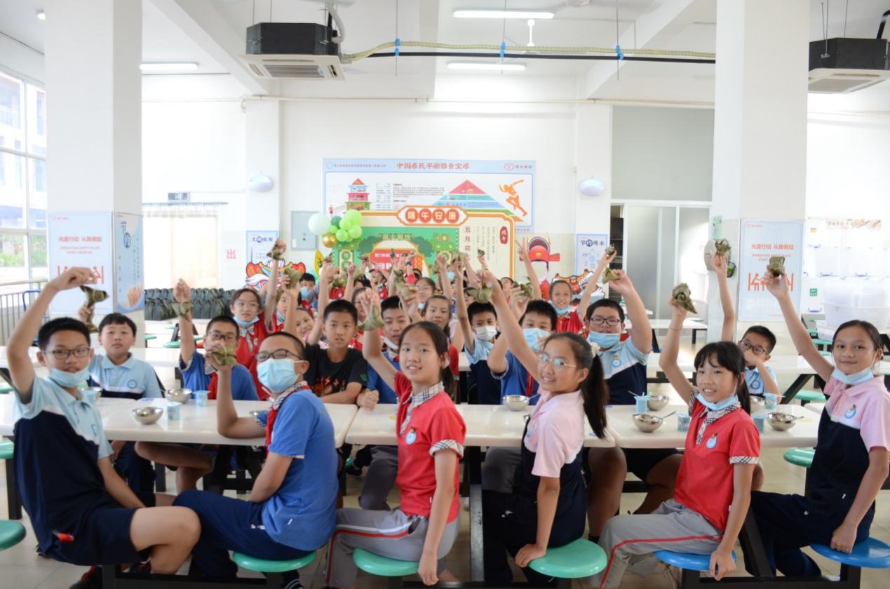 6月11日,“厦大餐饮”外国语学校初中部餐厅与学校工会、德育处组织初三150名师生开展主题为“迎端午,传承民俗文化,定高‘粽’,初三学子展宏图”的端午节活动,为2021年参加中考的学子们加油助威。