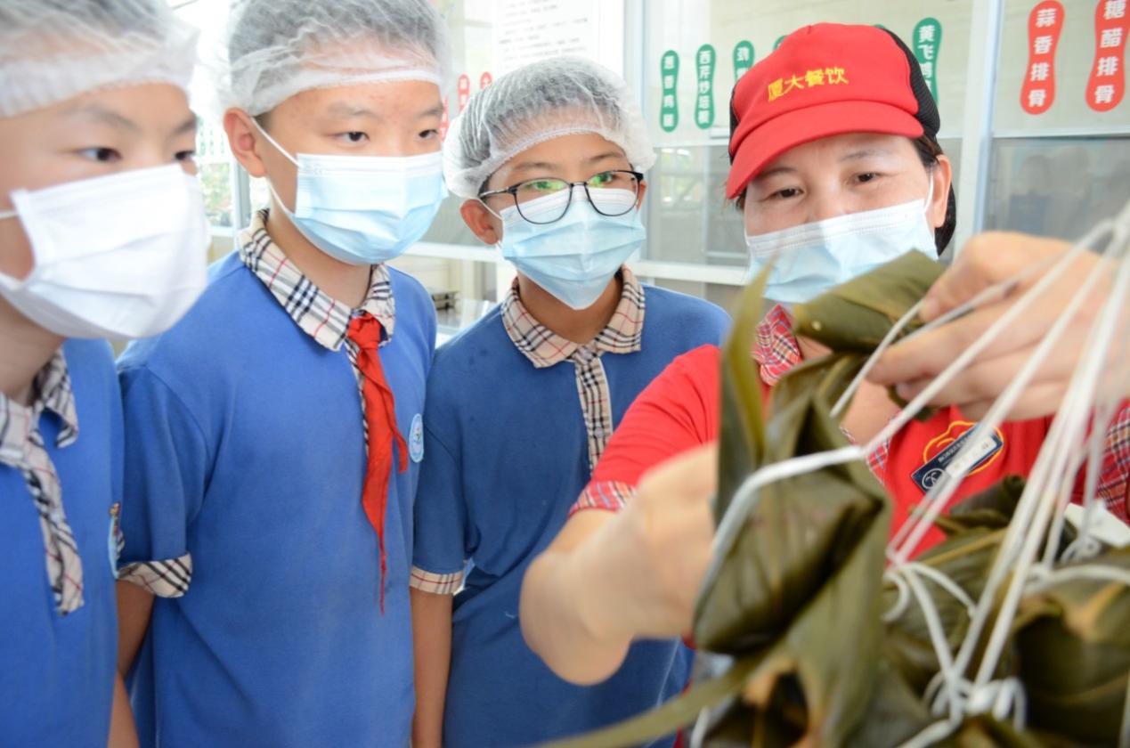 6月11日,厦门双十中学厦大餐厅与学校共同组织师生参与“粽香与时同行,端午守正创新”的主题包粽子活动,通过“结粽寄安康”的美好寓意祝福师生端午节安康。