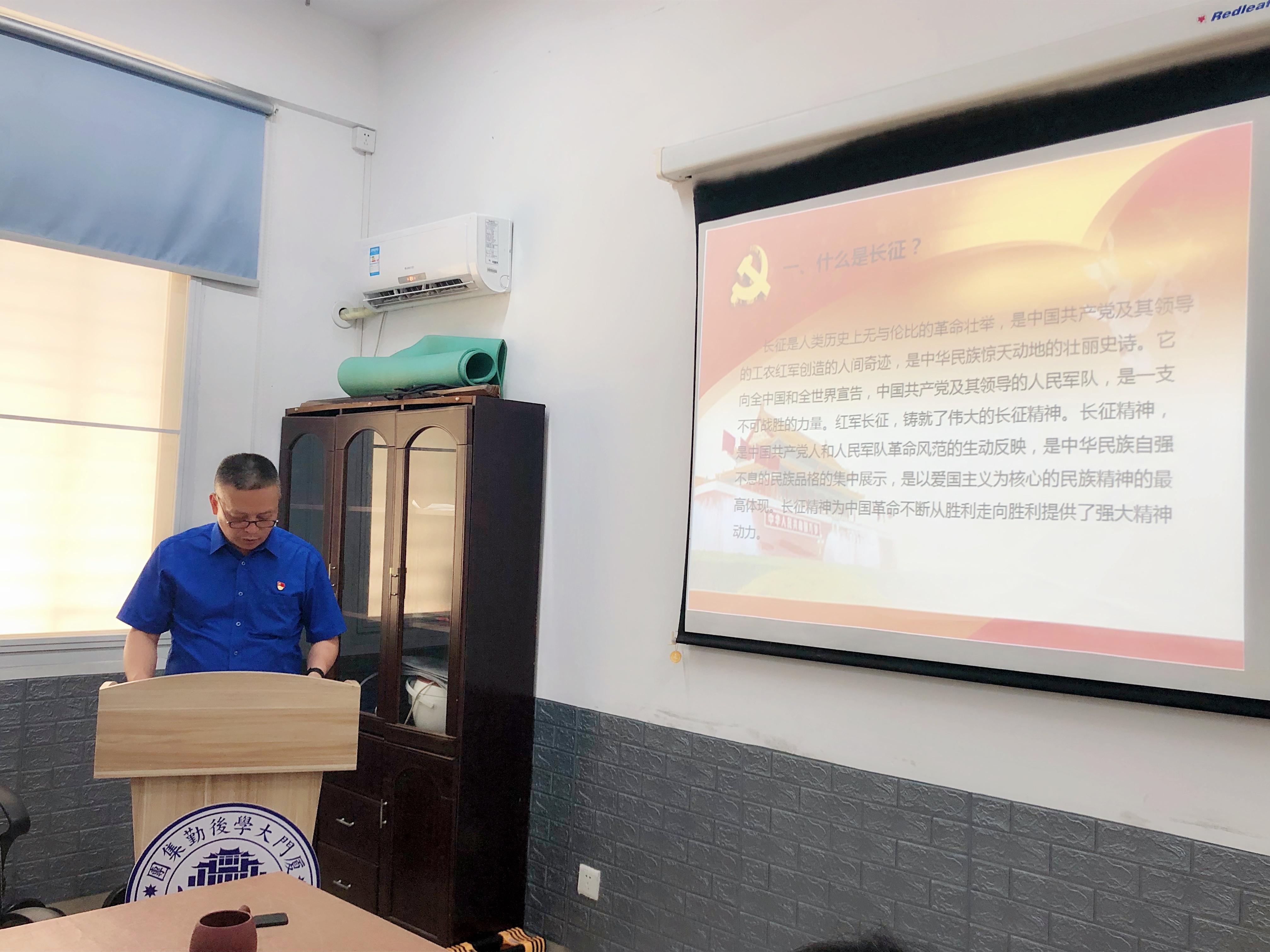 伟大长征精神,作为中国共产党人红色基因和精神谱系的重要组成部分,已经深深融入中华民族的血脉和灵魂,成为社会主义核心价值观的丰富滋养,成为鼓舞和激励中国人民不断攻坚克难、从胜利走向新的胜利的强大精神动力。围绕“什么是长征”“为什么要长征”“长征中经历了那些困难”“长征的历史意义是什么”“长征中有哪些值得我们学习的精神”“新时代如何做到不忘初心坚定信念”六个方面,支部书记李东龙通过简单朴实的语言、结合真实的红色故事进行了逐一阐述,与会党员个个听得全神贯注、热血沸腾,深受感染和启发。