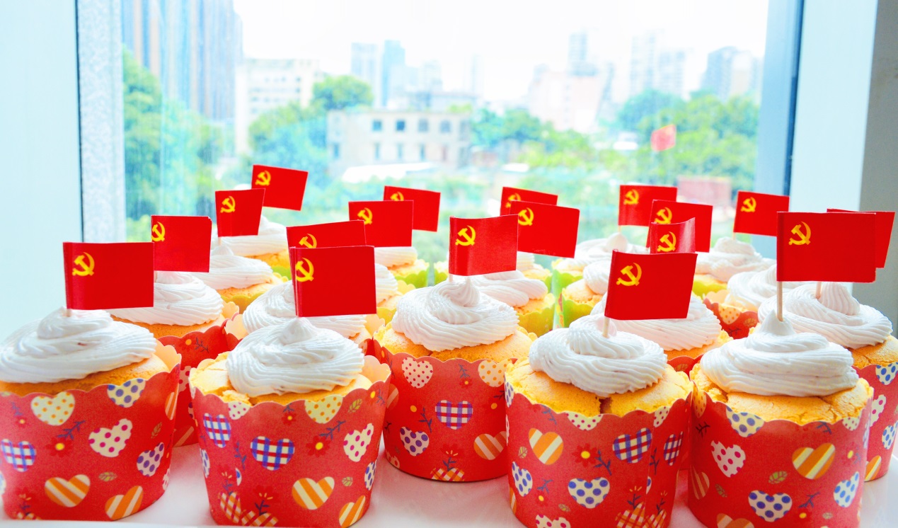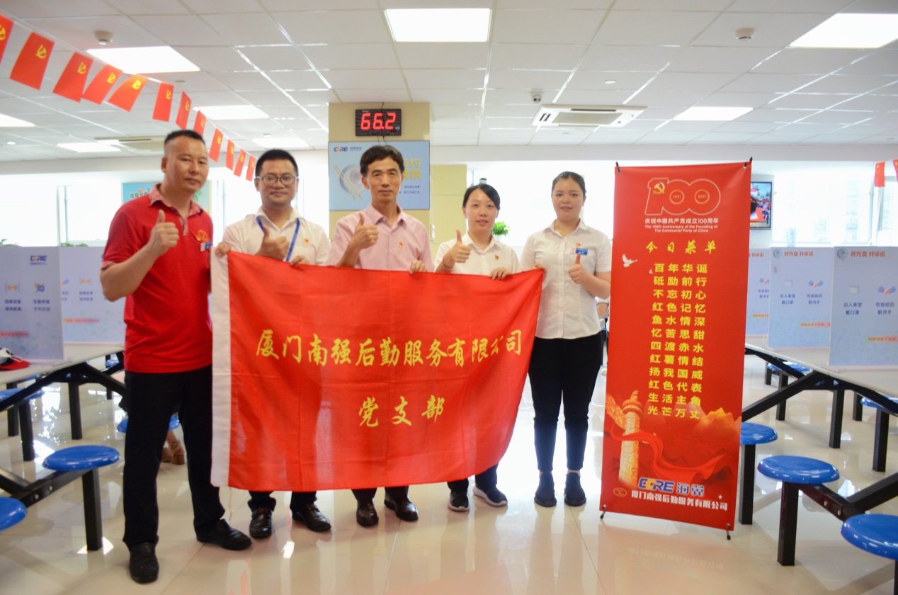 7月1日中午,在公司海翼集团员工餐厅,公司党支部的两名新发展党员积极创新、精心筹备,当天推出了具有革命记忆的红色菜品与红色糕点,为厦门海翼集团职工举办了一场红色主题盛宴,携手服务单位共同为党的生日庆贺,获得了海翼集团职工的一致好评。