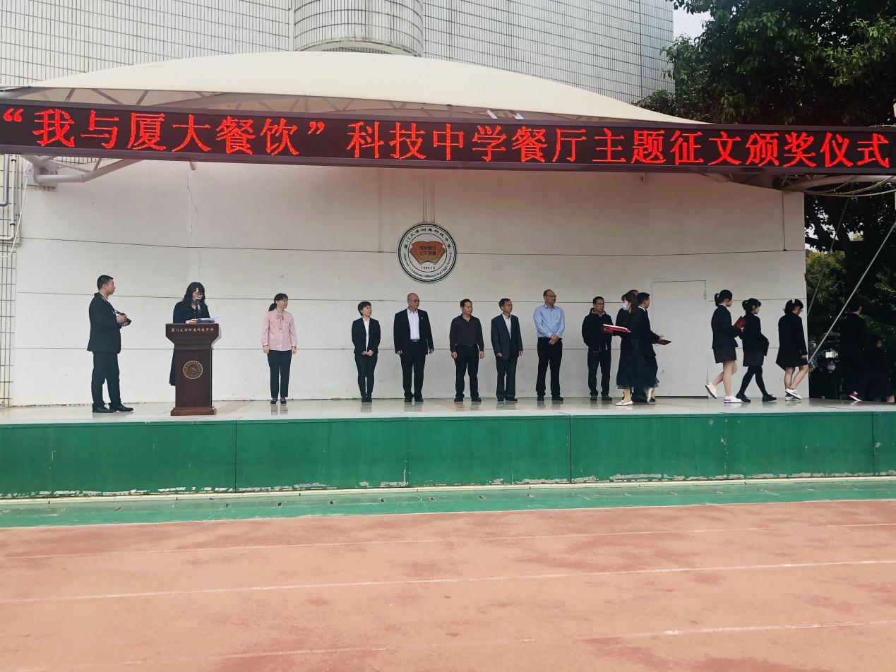 4月12日上午,科技中学举行“我与厦大餐饮”主题征文颁奖仪式,科技中学副校长许苹、吴忠露、钟灿富、倪子伟、傅强、祝国华和校工会主席杨望辉、总务主任王伟龄,南强后勤公司总经理罗阳、副总经理麻燕凌,为思明与翔安两个校区获奖的同学们颁发奖状与奖品。一蔬一饭皆是情,百年韵味聚舌尖。厦大餐饮之于科技中学的学子而言,是求学路上的精神陪伴,一种家的味道,一份浓厚的情怀。