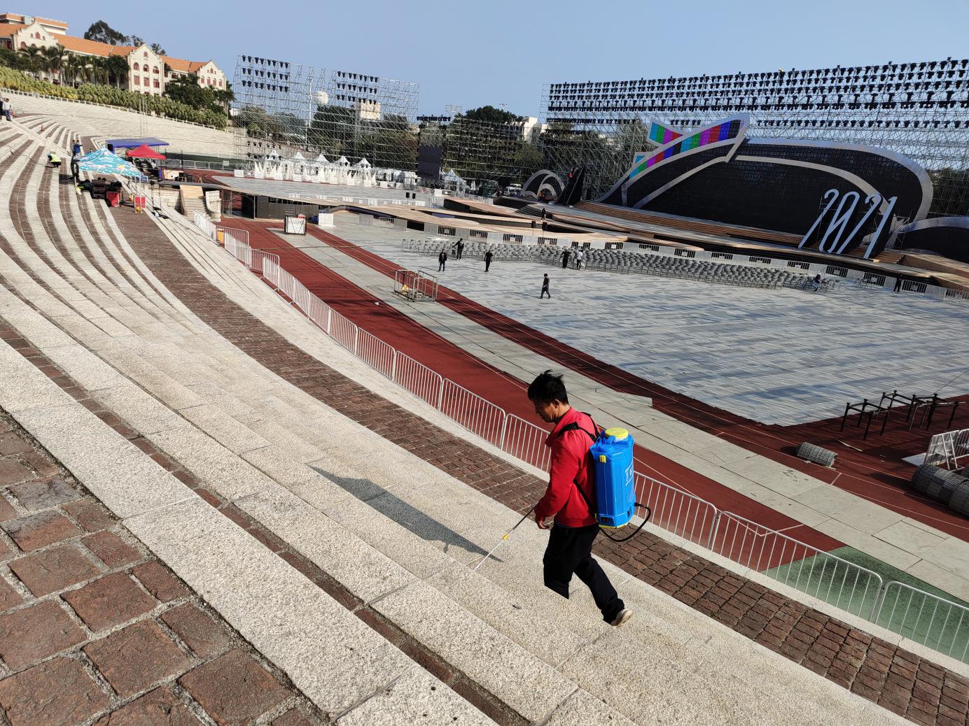 根据学校百年校庆工作安排,校庆文艺晚会将于4月6日在上弦场举行。目前,会场舞台搭建及晚会节目排练等正紧张有序地进行中。为确保晚会筹备各项工作顺利进行,在学校资产与后勤事务管理处和集团的指导下,学生公寓与环境服务中心精心组织,扎实做好会场保障工作。
