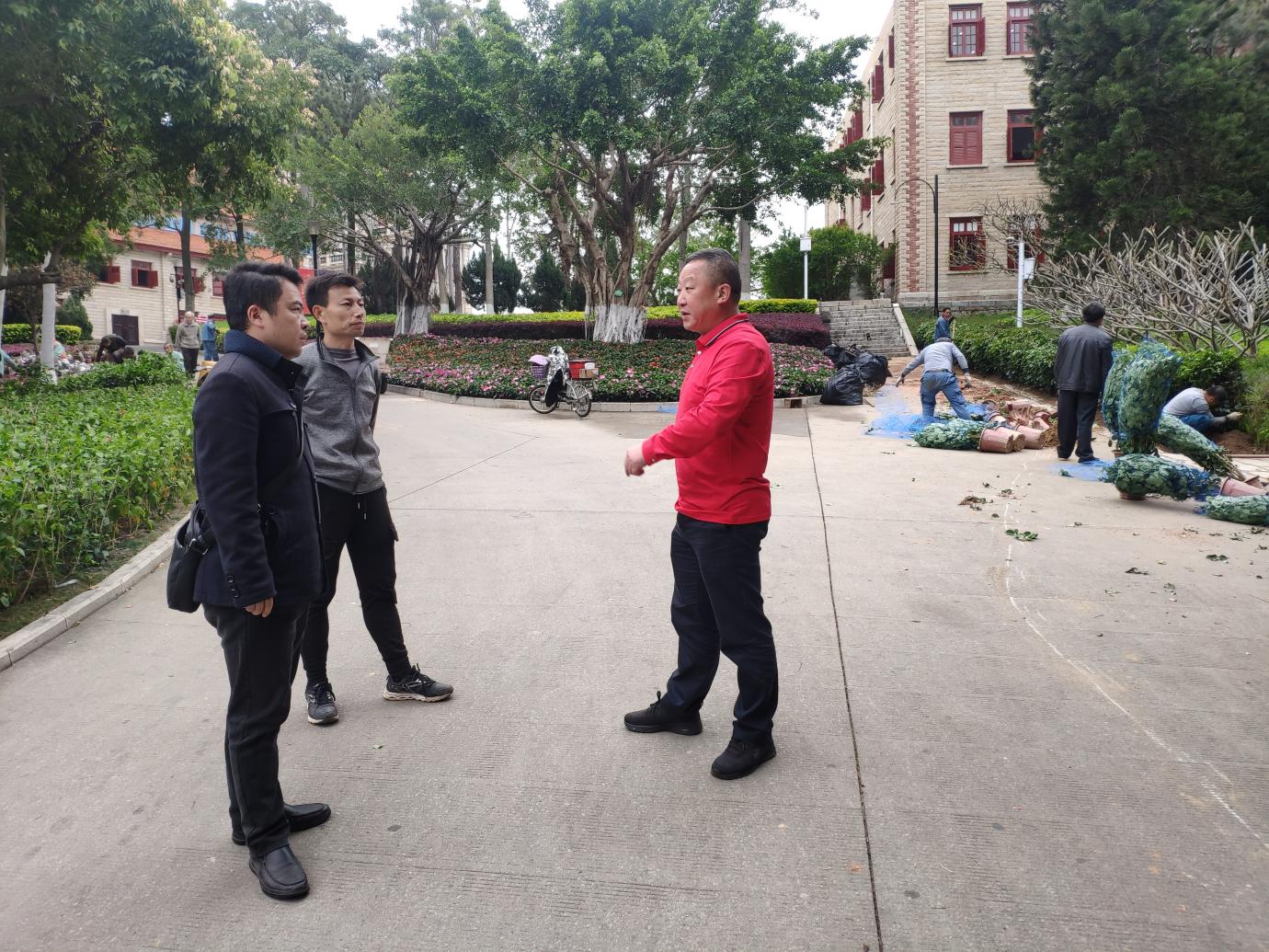 中心绿化保洁部加班加点推进百年校庆校园绿化提升工程及校园环境保洁项目,目前已完成芙蓉湖、嘉庚主楼、南强教学区、群贤路、建南大会堂周边等绿化提升项目,以及校园公共区域环境的全面消杀、思明校区核心主干道的清洗。