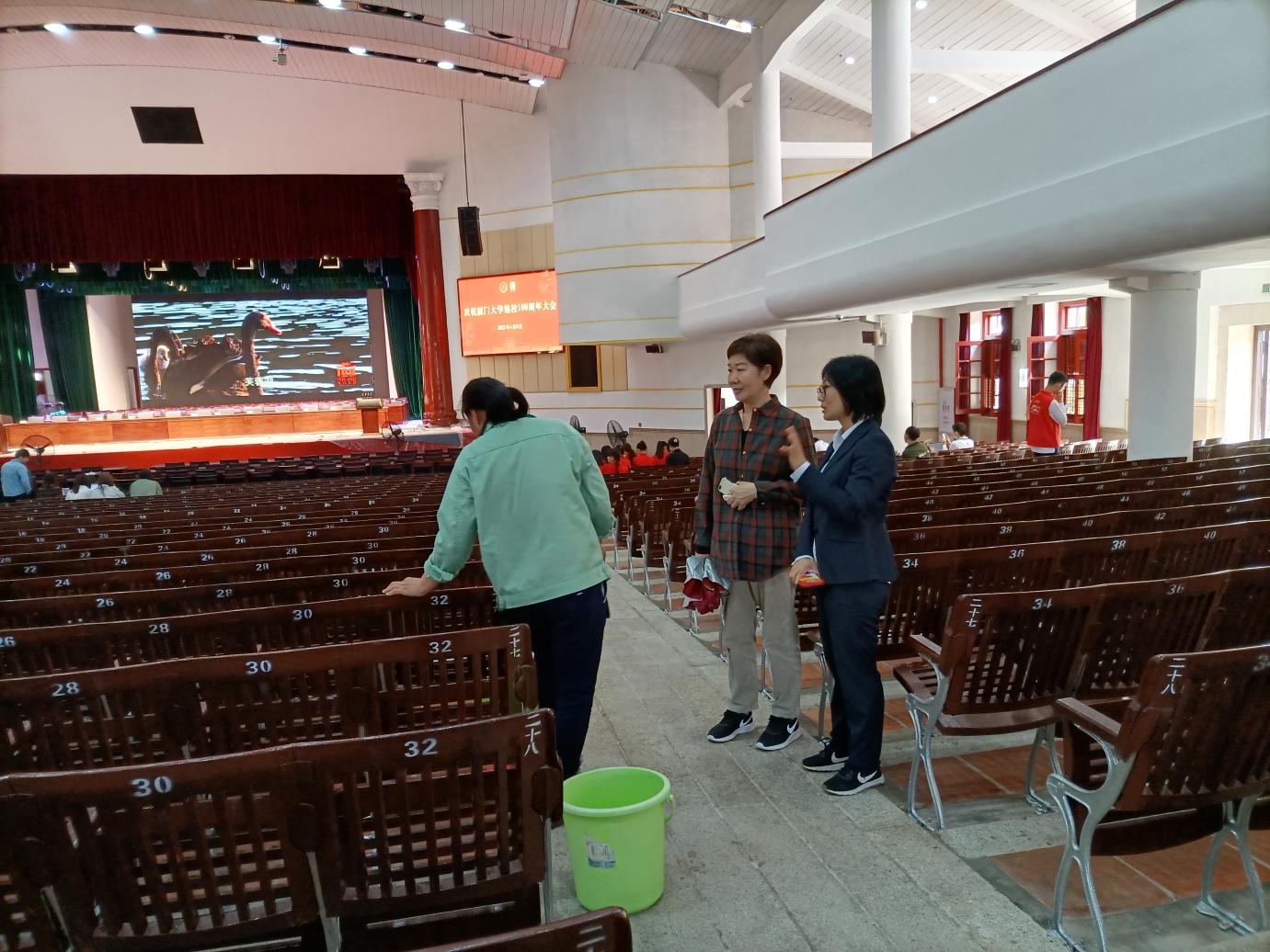 为保障建校100周年庆祝大会顺利进行,中心提前部署、积极与学校相关部门沟通了解需求,尽最大努力做好建南大会堂保洁等场地保障工作。
