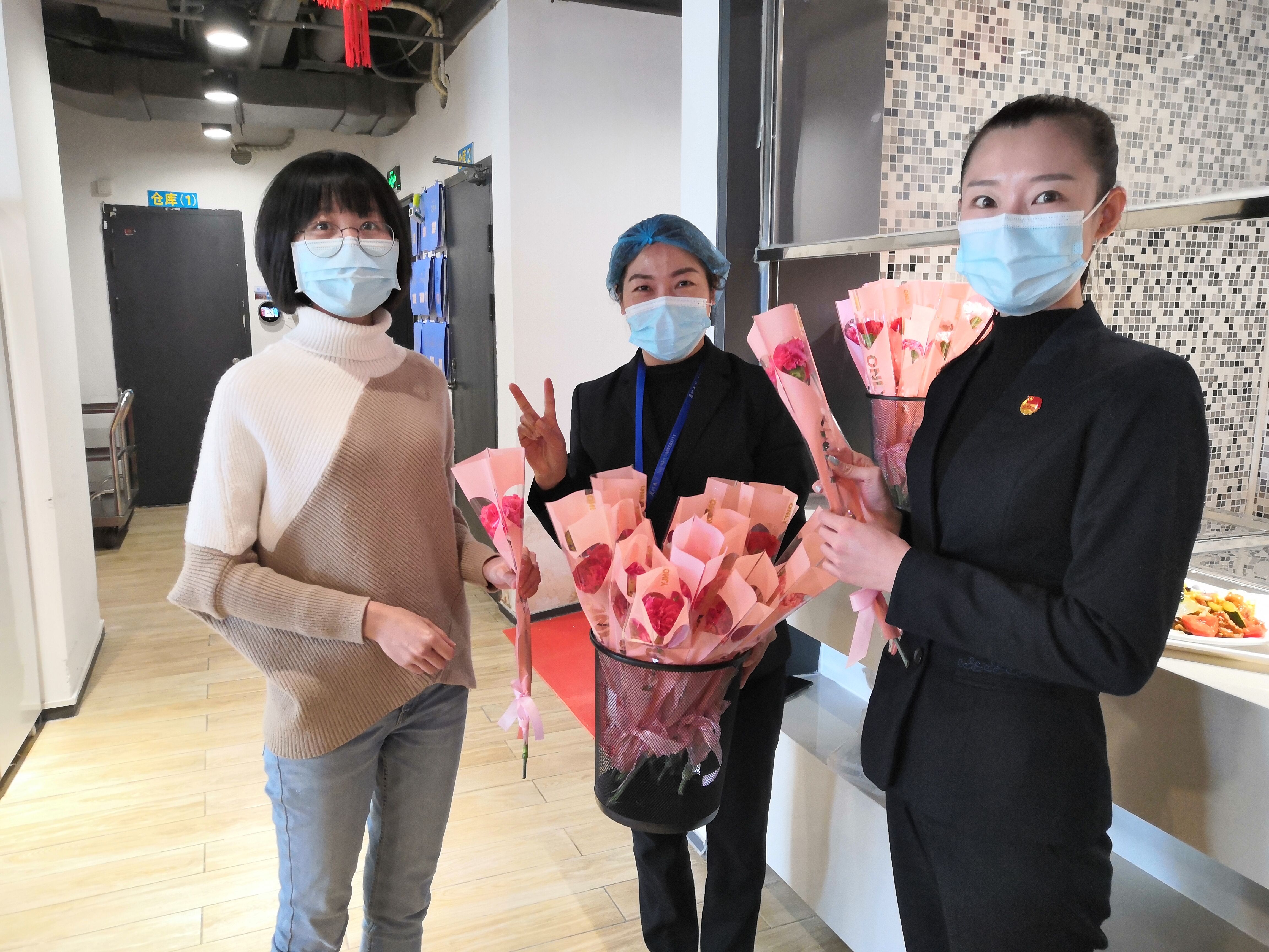 春水初生,春林初盛,春风十里不如你!节日当天,南强后勤公司(厦大餐饮)多家餐厅还积极与学校和企业开展互动,为老师们提供水果茶、鲜花、蛋挞、银耳羹、盆栽等妇女节小礼物,为企业员工奉上康乃馨、玫瑰、养乐多等节日祝福,举办插花等活动;老师们也为餐厅后勤人员献花,表达对“厦大餐饮”优质服务的肯定与谢意,大家共享女神节的欢乐!