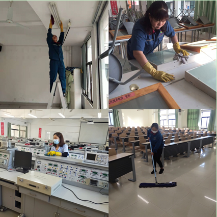 公教组严格落实防控新型冠状病毒感染肺炎疫情卫生清洁消毒相关要求,开学前对教学楼、行政办公区、公共卫生间、会议室、电梯间等重点区域和公共场所进行全面大扫除和通风消毒工作,为师生创建安心、舒适的学习环境。