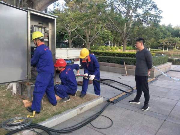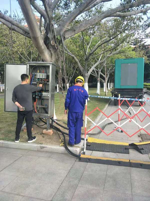 12月28、29日,嘉庚广场元旦舞会现场安装临时电源动力柜、进行临时电源通电工作,布设应急发电车,并做好安全防护工作。